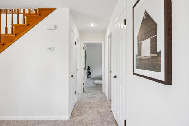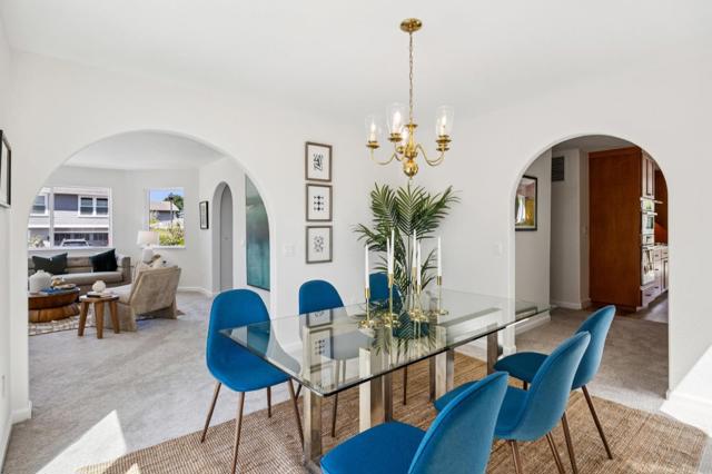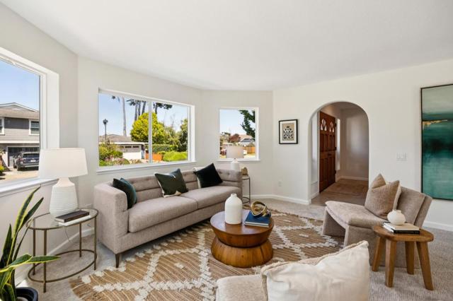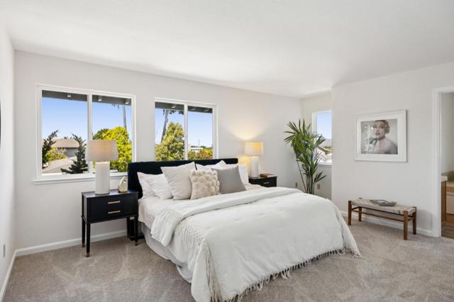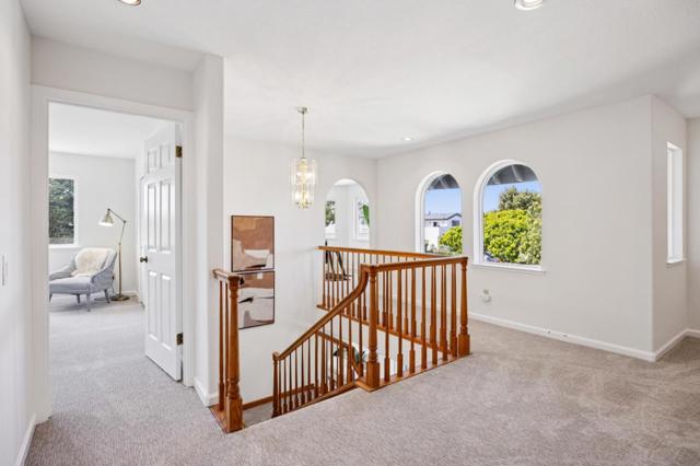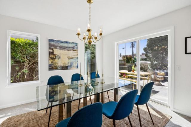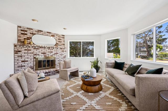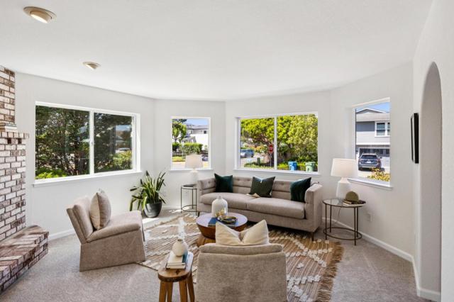 Beautiful Half Moon Bay home situated in the coveted Alsace Loraine neighborhood, offering 3 bedrooms, 2.5 baths, and 2,910± sqft of thoughtfully designed space for comfortable coastal living. Enter on the ground floor where a welcoming living room with a cozy fireplace sets the tone, flowing into the dining area with sliding doors that open to a patio ideal for entertaining amid manicured grounds and lush landscaping. The adjacent galley-style kitchen features an inviting eat-in area and leads out to a second private side yard with a grass area, perfect for outdoor dining or play, and is complemented by a convenient and dedicated laundry room, with access to the attached 2-car garage. Upstairs, a generous family room with a second fireplace and wet bar creates the perfect gathering space. The upper level also hosts all three bedrooms, including a spacious primary suite with an ensuite bath featuring a soaking tub. Two additional bedrooms share a large bathroom with ample storage, including one bedroom with a walk-in closet. A finished attic provides flexible bonus space and peek-a-boo ocean views. Ideally located just minutes from historic downtown Half Moon Bay, with boutique shopping, restaurants, beaches, and the coastal trail.. Easy access to Hwy 1 for all your commutes.