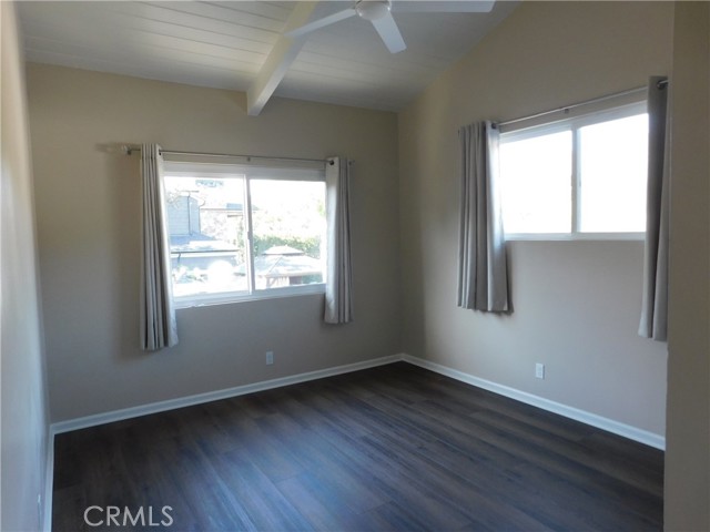 Large back Unit B, 2,099 square feet located on a quiet street, two blocks north of Foothill between Shamrock and Mountain. One large bedroom which could also be used as a large office downstairs. Large kitchen with new gas stove, new dishwasher and owner will provide refrigerator if requested. Large dining room and family room. Upstairs there is the primary bedroom with tub/shower, vanity, toilet and storage. There are two other good size bedrooms with hall bathroom with tub/shower and toilet upstairs. The entire interior has been painted, new vinyl flooring throughout, new ceiling fans in all bedrooms/office and family room with remotes. New bathroom faucets, mirrors and lights in all bathrooms. New barn door. New curtains and rods in all rooms, new hardward and door locks. There is a laundry room at the back of the property with two washers and two dryers for tenants use as well as the large pool in the backyard.