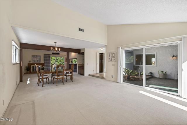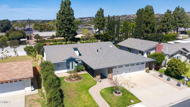 Located on a cul-de-sac in desirable Arneill Ranch, this single-story home offers inviting curb appeal with stone accents and a layout that feels easy and comfortable from the moment you arrive. A gated front courtyard with brick walkway creates a warm welcome and a private outdoor space to enjoy year-round. Inside, the open floorplan connects the main living areas seamlessly. The living room features a slider to the courtyard, filling the space with natural light, while the dining area flows into a cozy family room with a brick fireplace and a second slider leading to the backyard. It's a layout that works well for both everyday living and gatherings. The kitchen offers generous counter space, a gas stove, and a window overlooking the backyard--keeping things bright and connected to the outdoors. Offering approximately 1,956 sq ft of living space, the home includes 4 bedrooms and 2 bathrooms, providing flexibility for a variety of needs. The primary suite includes a slider to a private brick patio, along with an updated bathroom featuring a custom tiled walk-in shower and clean, modern finishes. The indoor laundry area is conveniently located at the end of the bedroom hallway. Additional highlights include dual pane windows, air conditioning, and custom window coverings throughout, including several remote-controlled blinds for added ease and convenience. The three-car garage provides plenty of room for parking, storage, or a workspace. The backyard is well maintained with a large grassy area and patio space, offering room to relax, garden, or entertain. Centrally located in Camarillo, close to Arneill Ranch Park, shopping, and everyday conveniences, this home has been well cared for and is ready for its next chapter.