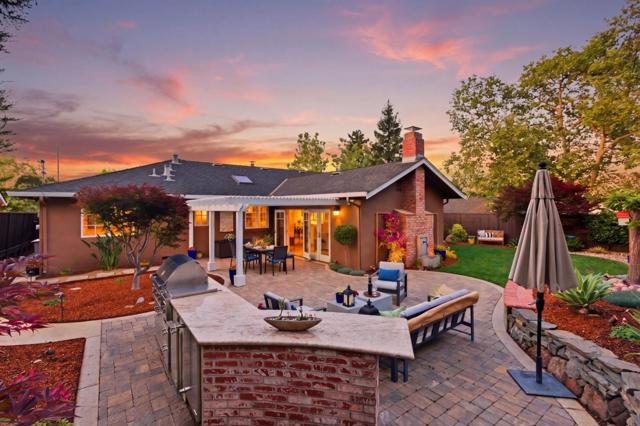 Tucked against the serene Los Gatos hillside with a peaceful greenbelt backdrop, this light-filled home offers privacy, space, and seamless indoor-outdoor living. Large windows, skylights,and glass French doors fill the home with natural light.The layout features multiple spaces for living, dining, and entertaining.The remodeled kitchen includes stainless steel appliances, and two natural stone fireplaces add warmth and character.The primary bathroom and powder room have been updated. Smart features include switches, appliances, a garden watering system, a water softener, and a wine fridge. Additional upgrades include central A/C, a new fridge, a gas range, a washer and dryer, an encapsulated crawl space with a sump pump, attic storage with a hoist, and an EV charging outlet.The private backyard with hillside backdrop features an outdoor kitchen,dining areas, and a detached workspace w/electrical and WiFi. Located in a quiet, welcoming neighborhood with easy access to hiking and biking trails, scenic roads, and downtown Los Gatos.This home blends convenience w/a peaceful lifestyle.Enjoy a strong sense of community, especially during holidays, w/festive neighborhood events throughout the year. Located within the Alta Vista Elementary, Union Middle, and Leigh High School districts.