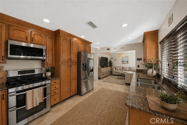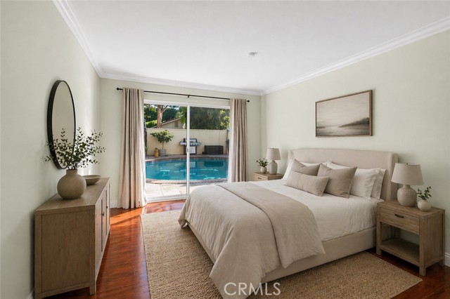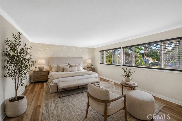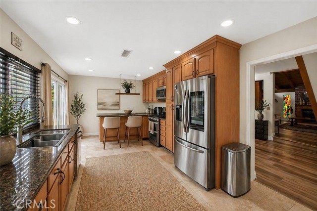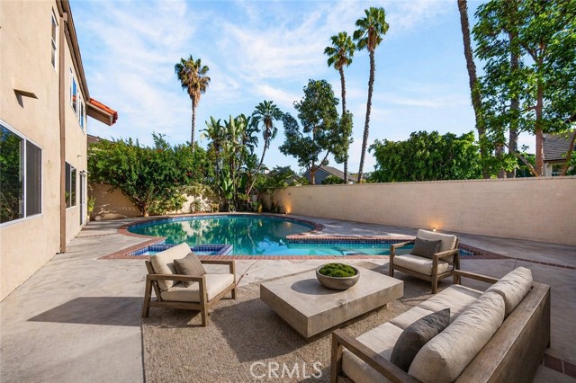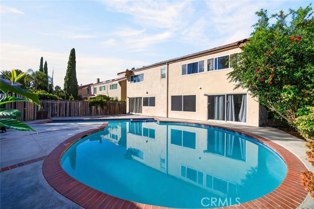 Luxury living in the prestigious city of Irvine, nestled within the highly sought after Racquet Club community. This beautifully remodeled pool home offers stunning curb appeal and is perfectly situated on a quiet, tree lined street. Featuring 4 bedrooms and 3 bathrooms, this spacious residence offers approximately 2,250 square feet of living space on a 5,533 square foot lot. Step through the inviting front patio into a bright and expansive living room highlighted by a soaring cathedral wood beam ceiling and a cozy brick fireplace. The space flows seamlessly into a formal dining room with elegant custom lighting. Large windows throughout fill the home with an abundance of natural light. The remodeled gourmet kitchen is a chef’s dream, featuring granite countertops, ample counter space, abundant cabinetry with stylish hardware, stainless steel appliances, and beautiful limestone flooring. A sliding glass door provides direct access to the backyard, creating effortless indoor outdoor living. Adjacent to the kitchen, the separate family room offers relaxing views of the pool, perfect for everyday living and entertaining. The main level also includes a bedroom and full bathroom, ideal for guests or extended family, along with direct access to the garage with laundry hookups. Upstairs, the expansive primary suite features generous closet space and a private en-suite bathroom with dual sinks, a soaking jacuzzi tub, and a separate shower. Two additional bedrooms are well sized and share a hallway bathroom. The backyard is designed for entertaining, complete with a sparkling pool and spa, ample patio space, and direct access to a walking trail that leads to Northwood Courtside Park. Additional highlights include a remodeled kitchen and bathrooms, luxury laminate flooring, and more. No HOA and no Mello Roos, which is an incredibly rare find in Irvine. Conveniently located near award winning Irvine Unified schools, dining, shopping, parks, entertainment, and easy access to the 5 freeway. Don’t miss this exceptional opportunity.