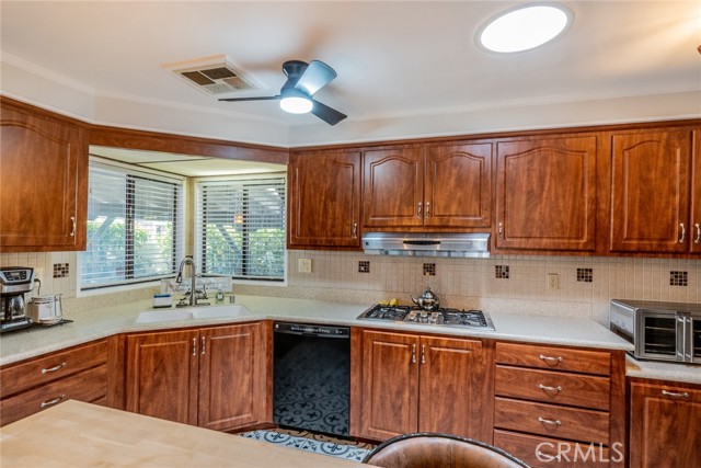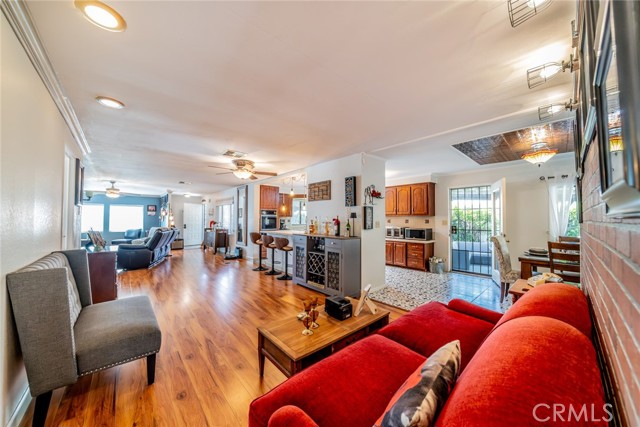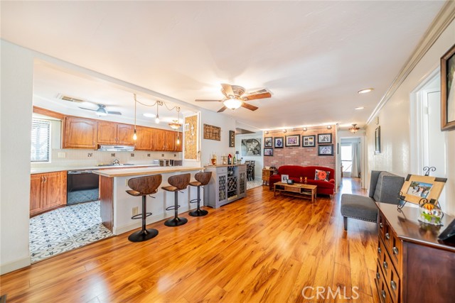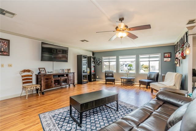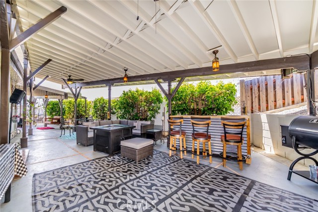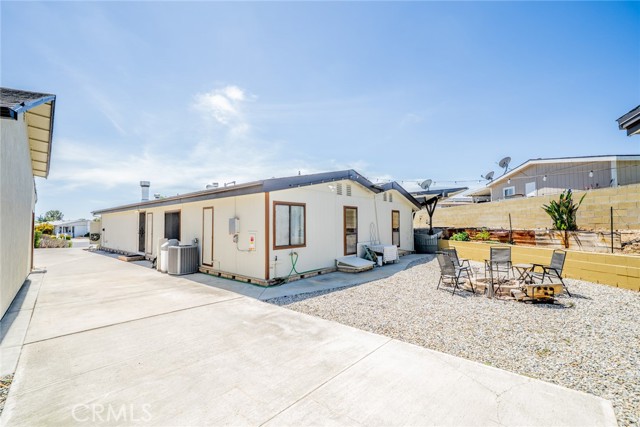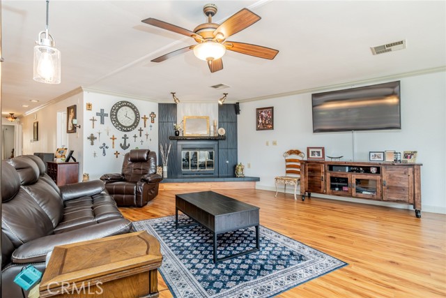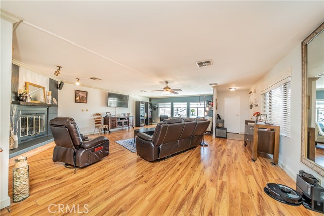 Beautiful open-concept home featuring an updated fireplace and a spacious primary suite with walk-in closet. Enjoy a thoughtfully designed backyard with covered patio, lighting, ceiling fans, and permanent color-changing exterior lights—perfect for entertaining. Energy-efficient with solar and low-maintenance saltwater system. Property offers incredible versatility with RV parking and full hookups, a 4-car garage with bathroom and sink, plus a finished shed/office with AC. Great for remote work or extra space. Family-friendly features include a playhouse and plenty of outdoor space. Mature citrus trees produce twice yearly, along with a thriving avocado tree and raised garden beds with automatic sprinklers. A rare opportunity offering comfort, flexibility, and room to grow—perfect for first-time buyers.
