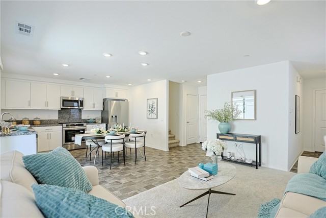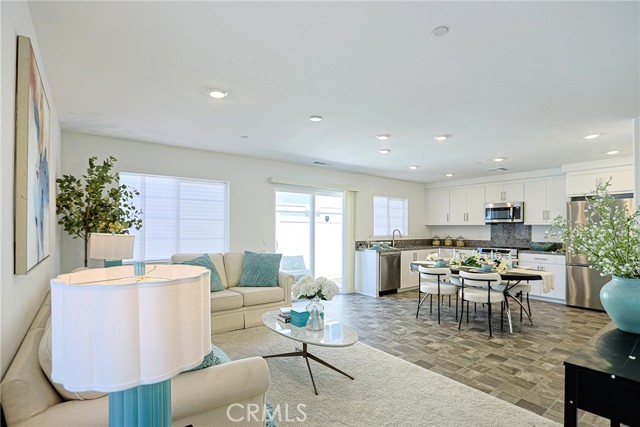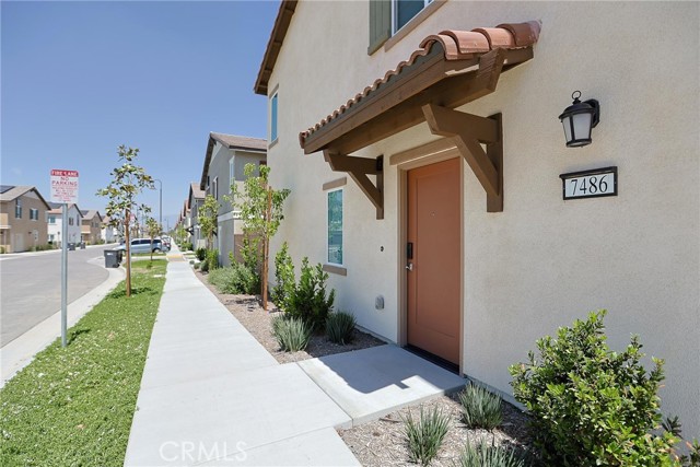 Welcome to 7486 Olive Grove Street. This stunning Residence Four of The Gardens at Highgrove Town Center was built by Lennar in 2025. It is the Largest End-Unit Townhome that is located near a Serene Cul-De-Sac. This Residence offers Natural Lighting, Creating a Bright and Inviting Atmosphere throughout. Residence Four offers 3 Bedrooms, 2.5 Bathrooms, 1,549 Square Feet of Interior Space, Private Patio for Outdoor Relaxation. First Floor shares an Open-Concept Design between the Family Room, Dining area and Kitchen featuring Granite Countertops, White Cabinetry, Stainless Steel Appliances, making Entertaining easy. This Residence combines Modern Style with Everyday Comfort, which include Reinforced Bathroom Walls for Future Grab Bar installation and Wide Enough Doorways for Wheelchair Passage. Two-Car Garage with Direct Access. Upstairs, you'll find a Versatile Loft that can double as an additional Shared Living Space and Home Office. There are Two Secondary Bedrooms including one with a Walk-In Closet, along with a Luxe Owner's Suite with an En-Suite Bathroom and a Large Walk-In Closet. Conveniently located nearby is a Laundry Room that makes home chores simpler. HOA includes Wifi, Resort-Style Swimming Pool and Clubhouse, Tot Lot Playground, BBQ & gathering areas. Within a 10 minute drive are K-12 Schools, UC Riverside, Downtown Riverside, Mission Inn & Dining.