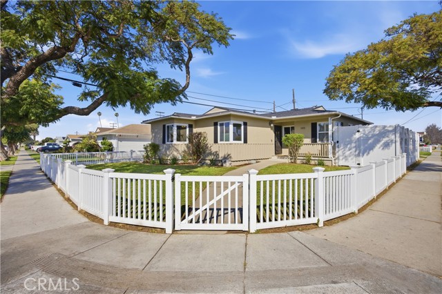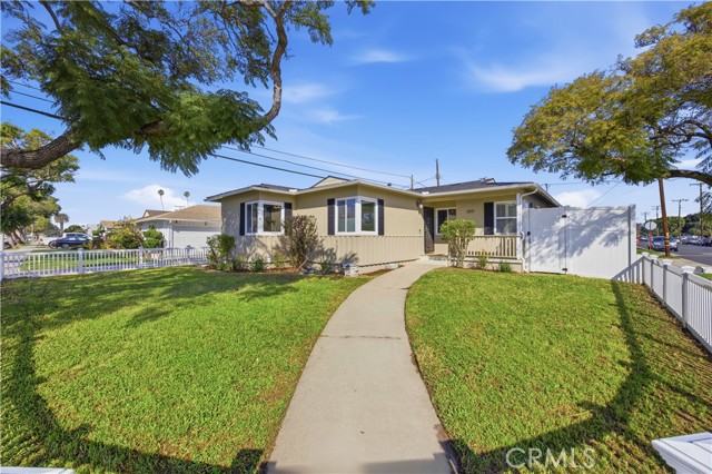 BEST PRICED HOME IN GARDENA! Welcome to your dream home in the heart of Gardena. Nestled on a spacious and meticulously maintained corner lot, this home offers a perfect blend of timeless character and modern upgrades. Framed by a crisp white picket vinyl fence and shaded by gorgeous Jacaranda trees, this property offers stunning curb appeal with its vibrant purple blooms. The backyard features a permitted 8-foot privacy fence, providing a secluded sanctuary with ample room for a dog-run or storing your recreational vehicles. Step inside to discover a bright and airy interior featuring original hardwood floors that flow seamlessly throughout. Smooth ceilings, dual-paned windows, and elegant crown molding are just some of the interior highlights. The heart of the home is the beautifully updated kitchen, boasting brand-new quartz countertops, stainless steel appliances, and a "darling" breakfast nook for your morning coffee. Located off the kitchen for ultimate convenience, the dedicated laundry room offers side-by-side hook-ups and an adjoining half bathroom. Each bedroom serves as a comfortable retreat with plenty of closet space and individual ceiling fans. For those who love to entertain, the covered patio off the living area provides the perfect setting for alfresco dining or simply enjoying your garden. A standout feature is the detached 2-car garage; perfect for an ADU conversion/addition. With the roof and plumbing permitted in 2017, this home offers true peace of mind. Perfectly located across from Amestoy Elementary as well as rapid access to the 91, 110, and 405 freeways, you are just minutes from Gardena’s diverse restaurants and shops. This home may qualify for down payment assistance programs and grants, as well as solar installation upon closing.