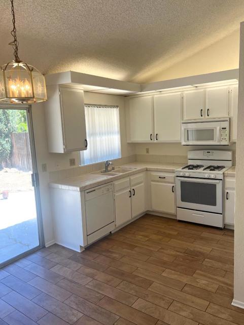 Nice Home in Quiet Neighborhood - New Paint Inside and Outside - New Carpeting throughout the Home - All windows have window coverings throuout the Home W Vaulted Ceiling in Living Room and Kithchen - Fireplace in Living Room - Kitchen has bay window looking out into backyard, Gas Cooktop and Oven, Microwave, Dishwasher, , Lots of Cabinets - First Bedroom has Double Doors into Living room, Could Work Well as Office - Nice Sized Second Bedroom with Big Closet - Hall Bathroom has Shower over Tub - Master Bedroom has large Double Closet , Sliding Glass Door to Backyard, Private Bathroom with Shoiwer Stall - Spacious 2 Car Garage with extra room for Work Bench/Shop - Large Feced in Backyard