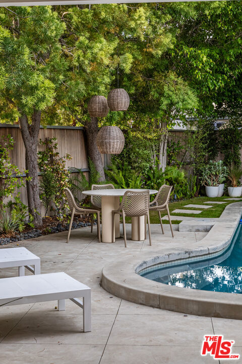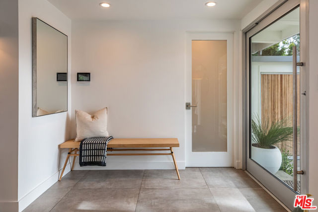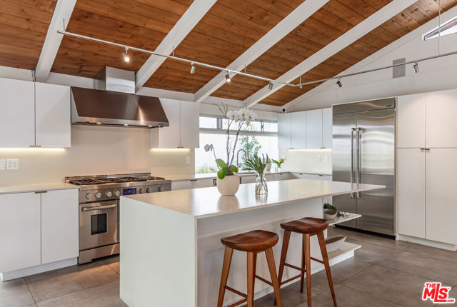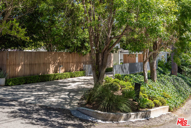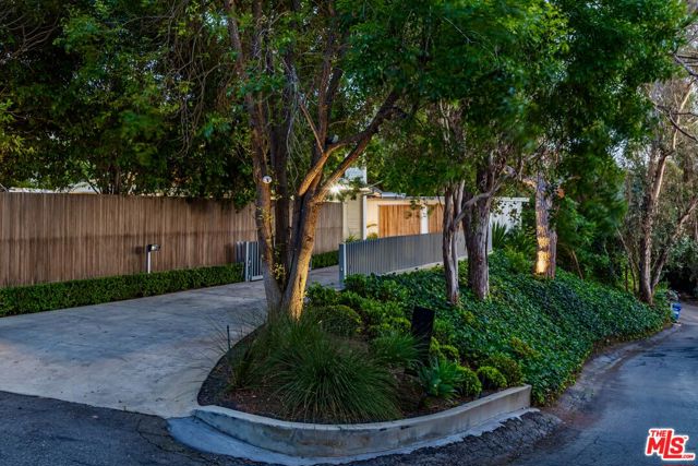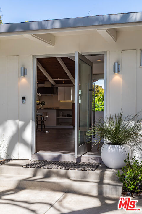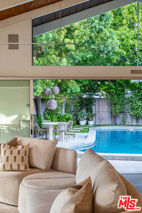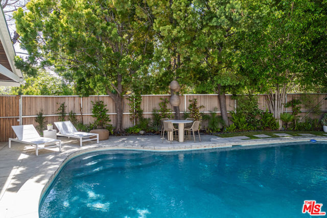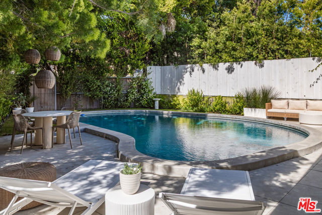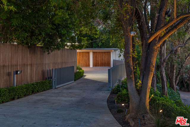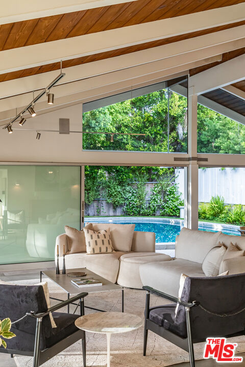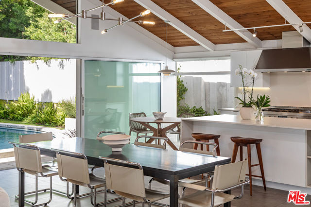 Beautifully nestled within this highly coveted Brentwood Flats neighborhood, just moments from Brentwood's best shopping and dining, this authentic Cliff May Mid-Century masterpiece offers exceptional architecture with 3 bedrooms, 2.5 baths, a versatile office/den, and great room opening to a private outdoor paradise. Embodying timeless California design, 586 Lorna Lane is where architecture, light, and landscape are seamlessly integrated. Proudly positioned atop a secluded driveway and behind a gated entry at the end of a private road serving only a select few homes, this property offers a rare sense of seclusion. A striking white facade opens to warm interiors defined by dramatically pitched wood beamed ceilings and a grand, light-filled living space. The living room with central fireplace flows seamlessly into a central dining area and tastefully updated kitchen, all unified by a refined palette of neutral whites, soft grays, and natural stone. Expansive sliding glass doors span the main living area's tall A-frame, a hallmark of Cliff May design, creating a seamless indoor-outdoor connection as the spaces open entirely to the resort-like backyard and lagoon-style pool, allowing for effortless entertaining and everyday living. The kitchen is appointed with high-end stainless steel appliances, a wine fridge, and clean, understated finishes that complement the home's architectural character. An adjacent den offers additional flexibility for lounging, media, or workspace. The primary suite feels like a private retreat, complete with a vintage Malm fireplace, walk-in closet, additional lounging nook and direct access to the outdoors. The spa-inspired bath features a soaking tub, dual vanities, and a walk-in shower set against striking black pebble flooring. Two additional bedrooms offer seamless built-in closets and share a well-appointed full bath, accented by a striking stone vessel sink. Outdoors, a privately hedged setting surrounds a sparkling heated saltwater pool - an ideal backdrop for both relaxation and entertaining. The two-car garage includes one space curated as an office or gym with a mini-split system, offering lifestyle-driven flexibility and functionality. Don't miss this rare offering that honors architectural heritage while embracing modern comfort in one of Brentwood's most sought-after enclaves. 586 Lorna Lane is a true testament to Cliff May's vision of the post-war California dream home.