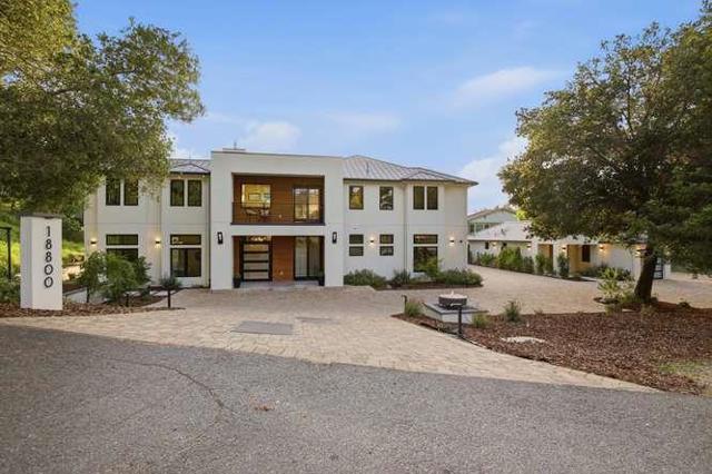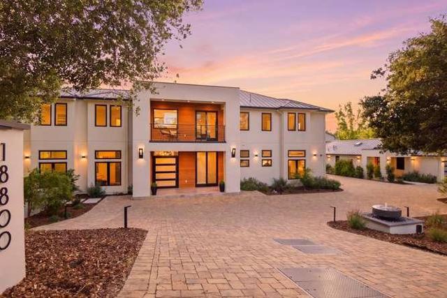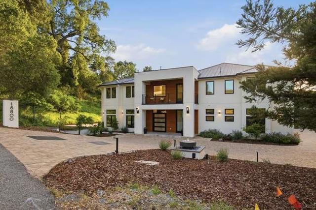 This newly constructed estate is a testament to masterful craftsmanship and contemporary design. Unique architectural elements and bespoke finishes create light-filled spaces with seamless indoor-outdoor flow. Offering 5,566± SF on a 1-acre+ lot, the home is tucked behind a shared private gate for ultimate seclusion. The residence features 5 en-suite bedrooms, 5.5 baths, a private office, and an attached in-law suite with a kitchen and laundry. A detached $\pm$999 SF ADU offers 2 bedrooms, 2 baths, and a 1-car garage ideal for guests or multi-generational living. A grand pivot entry reveals soaring 15 ceilings, floor-to-ceiling windows, European oak floors, imported stone, and Hi-Fi audio. A marble rotunda staircase, elevator, and spa-inspired baths with steam showers enhance the home scale. The chefs kitchen boasts Miele appliances, a steam oven, espresso station, wine fridge, and touch-latch cabinetry. Resort-style grounds include multiple balconies, fountains, an outdoor kitchen, a fire pit, & space for a pool or tennis court. High-tech amenities include Tesla solar/Powerwalls, EV charging, smart home integration, and a 3-car attached garage. Ideally located minutes from downtown Saratoga and Los Gatos, with easy access to Highways 17 & 85 and served by top-tier local schools.