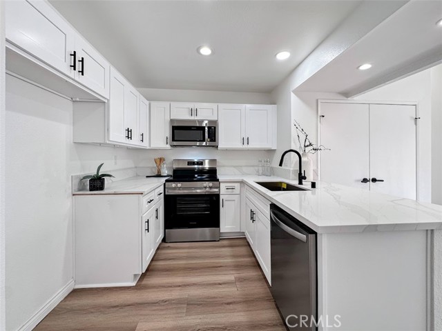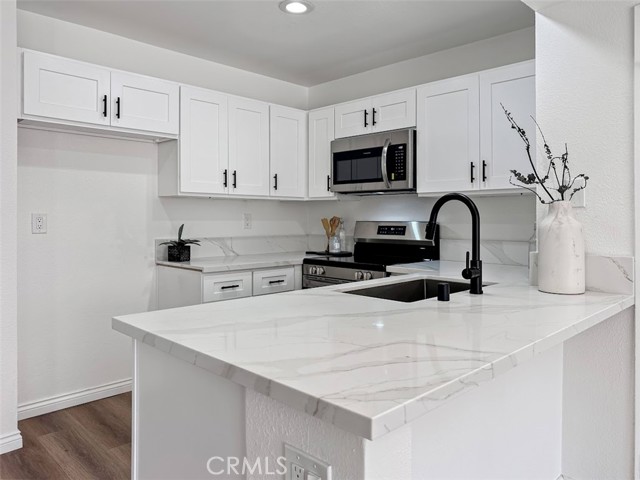 Beautifully updated, turn-key 2 bedroom/1 bathroom corner unit condo in the desirable Edgehill Village community. Enjoy designer like finishes including new interior paint, soft close shaker cabinets, quartz counters and stainless steel kitchen appliances just to name a few. The light & bright living room offers vaulted ceilings, laminate flooring and a sliding door to your private balcony. The kitchen is thoughtfully designed with a counter-height breakfast bar, large single sink, recessed lighting and nearby dining area. The functional layout includes a Jack-and-Jill bathroom with direct access from both bedrooms, plus a convenient indoor laundry closet. This home also includes a one-car garage. Edgehill Village is a nice gated community with hill and mountain views, resort style grounds with multiple pools and is a gated/controlled access community. Located conveniently close to Blair Park, Shandin Hills Golf Course, Cal State San Bernardino, scenic hiking trails, local shopping, restaurants and much much more!!