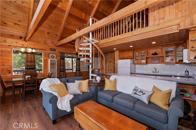 Welcome to your perfect mountain escape in the highly sought-after Moonridge neighborhood of Big Bear Lake. This charming 2-bedroom, 1-bathroom retreat offers approximately 750 square feet of thoughtfully designed living space on a spacious 7,200 square foot lot, blending cozy cabin character with modern comfort. Step inside to a bright and inviting living room featuring vaulted ceilings and expansive windows that fill the space with natural light and capture the surrounding alpine beauty. The open feel continues with a unique loft-style bedroom, adding flexibility and charm to the layout. The bathroom is designed for relaxation, complete with a separate soaking jet tub and a walk-in shower—ideal after a day on the slopes or trails. Positioned for year-round adventure, this home is just minutes from Big Bear’s premier ski resorts, scenic hiking and mountain biking trails, and the renowned Big Bear Alpine Zoo. Whether you're seeking a full-time residence, vacation getaway, or investment property, this Moonridge gem offers an unbeatable location and lifestyle. Experience the best of Big Bear living—schedule your showing today.