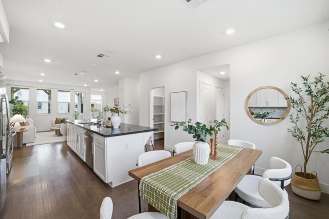 Gorgeous, bright & clean 4 bedroom, 3.5 bath three story condo with no upstairs or downstairs neighbors. A full bedroom suite and a two-car side-by-side garage on the ground floor. The middle level boasts a chef's kitchen with a giant island for both cooking prep and dining. There is plenty of shelf space and a walk-in pantry plus a private balcony for your enjoyment. Upstairs has the primary suite plus two other bedrooms, another full bath, and the washer & dryer. Quality built by Lennar in 2020, this home sits on one of the most desireable lots in the development. Instead of peering into your neighbor's windows, both the front and back windows face the street allowing you to keep the blinds open and enjoy the sunlight. Ample street parking in front for your guests and easy access to commute routes. Also close by to Don Edwards San Francisco National Bay Refuge.