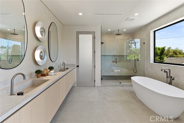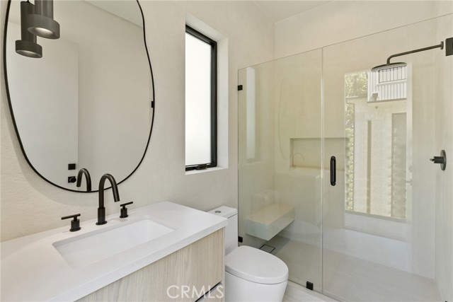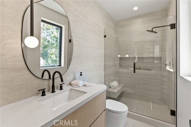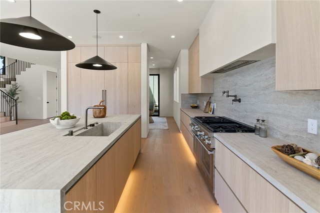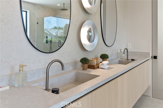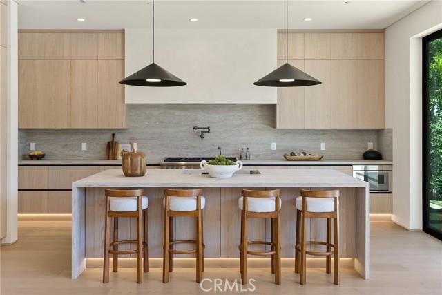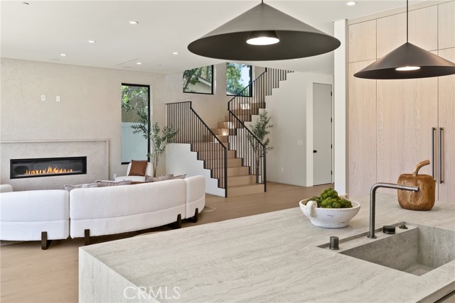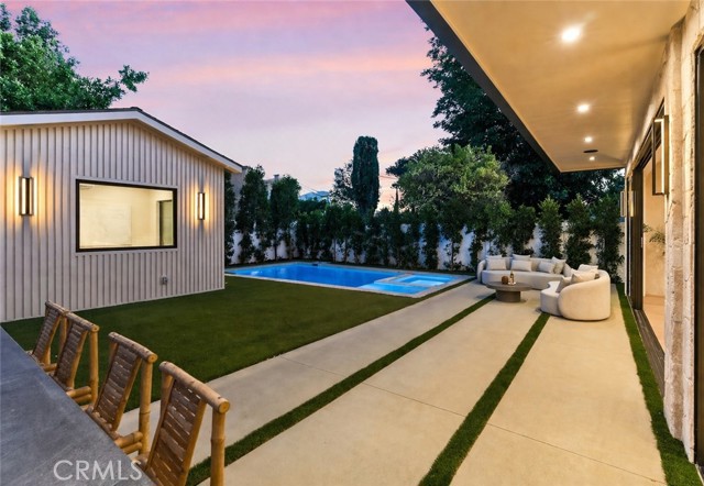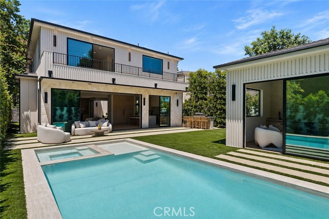 Be the first to live at this exceptional newly built 2025 gated estate, situated on a serene street lined with luxury homes, just moments from Ventura Boulevard, this stunning residence sets a new standard for luxury living. Designed with both comfort and elegance in mind, the main house features 5 beds & 5.5 bathrooms, including a detached guest house. The open-concept floor plan is ideal for modern living, featuring wide-plank golden oak flooring, warm Venetian plaster walls, & expansive floor-to-ceiling windows flood the space with natural light. A dramatic family room with a sleek custom fireplace, & oversized pocket sliding doors that open to the backyard oasis. The designer chef’s kitchen is a true centerpiece, featuring custom cabinetry, high-end appliances, porcelain countertops, and a statement island with integrated stone sink & premium fixtures, blending functionality with artistry.The formal dining room is elevated by a statement wall & a designed wall wine holder adds a bold touch of sophistication and convenience for entertainers. The first-floor ensuite is perfectly positioned for use as a home office, wellness or guest room. A dramatic powder room with a floating stone sink adds a bold design element. Upstairs, soaring ceilings frame three generously sized ensuite bedrooms, shared front balcony and all with access to an oversized patio. The primary suite is a luxurious retreat, with a stunning fireplace, a designer wall finished in custom textured Venetian plaster infused with relaxing Tulum-inspired vibes, custom built-ins, a walk-in closet, and a private balcony. The spa-like bathroom boasts a soaking tub, dual rainfall showers & vanities. Step outside to a resort-style backyard with lush landscaping, a sparkling pool & spa, outdoor kitchen with b.b.q, a detached enclosed cabana equipped with a full bathroom & a kitchenette designed for guests, an office/pool house and effortless entertaining & relaxation. The Crestron smart home is equipped with built-in speakers, security cameras, and ambient LED lighting throughout. Crafted by one of Sherman Oaks’ most acclaimed builders, renowned for their visionary architecture, superior craftsmanship, and sophisticated blend of high-end materials. Located in a highly sought-after Sherman Oaks neighborhood, easy access to the area's best shops, dining, Kester magnet school and the 101 & 405 freeways. Own this rare opportunity, a one-of-a-kind estate that perfectly embodies both luxury & lifestyle.