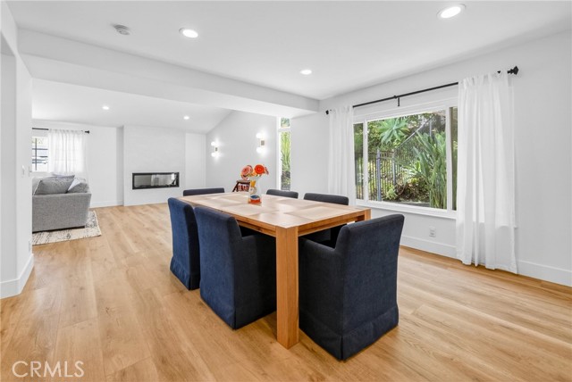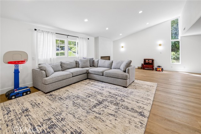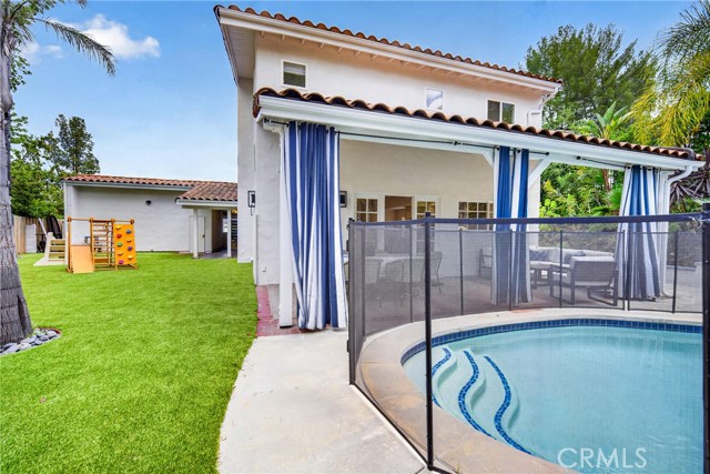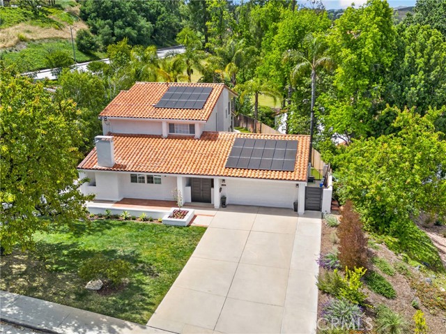 Just a stone’s throw from the lake, this beautifully reimagined Classic Calabasas home blends timeless charm with elevated modern living. Set on a rare, flat 10,800-square-foot lot, the home has been thoughtfully enhanced with natural gas, newer copper plumbing (buyer to verify extent), leased solar, and a freshly painted interior and exterior. A stunning chef’s kitchen features custom maple cabinetry, a commercial-grade 48" Viking range, and expansive quartz surfaces anchored by a striking Cleaf center island, with ample storage on both sides —designed for gathering and everyday living—along with a beautifully appointed Cleaf laundry room. The spa-inspired primary bath offers a serene retreat with a walk-in shower and indulgent tub, complemented by high-end finishes including Newport Brass, Walker Zanger, and artisan Talavera tiles. Throughout the home, COREtec luxury flooring adds both style and durability, while the living room is warmed by a sleek electric fireplace. French doors invite you outside to a covered patio and effortless indoor-outdoor living. The backyard is a private tropical escape, opening directly to a CPHA-maintained greenbelt park—offering a rare sense of space, privacy, and connection to nature.