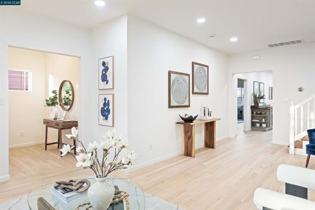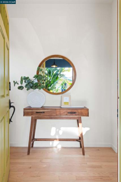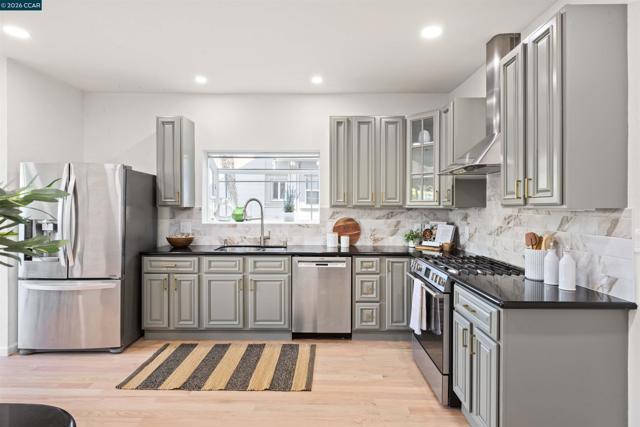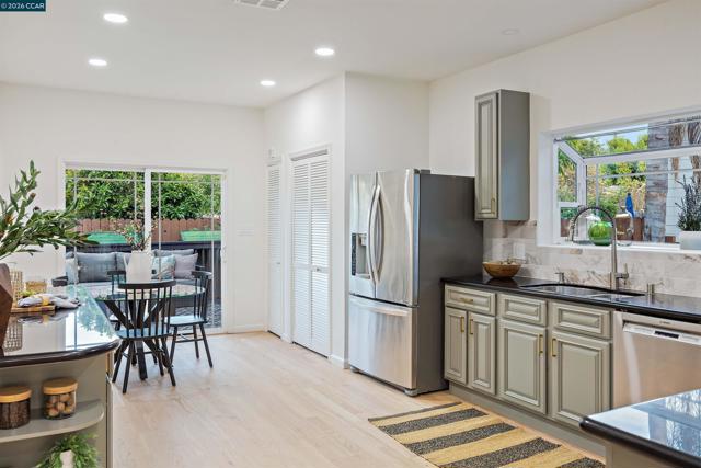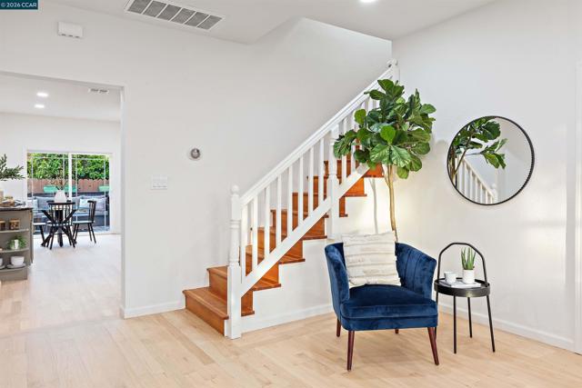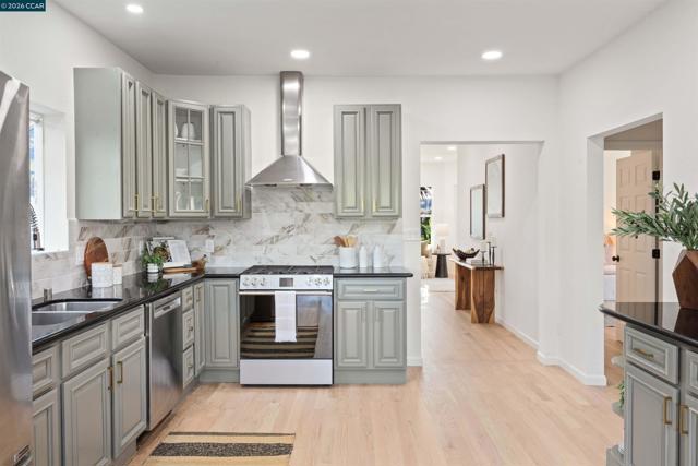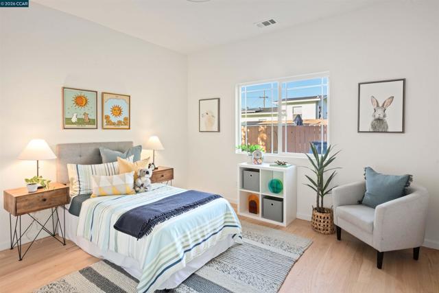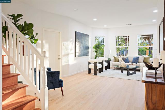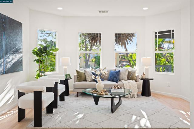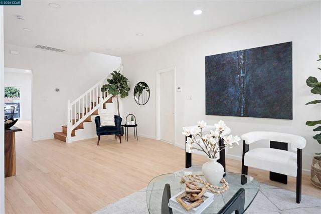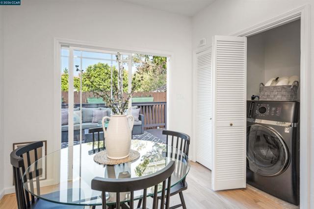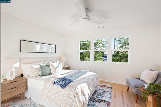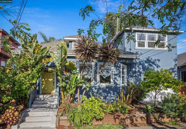 Welcome to 3131 Mabel Street in sought-after Southwest Berkeley, where charm, light, and thoughtful updates come together in a beautifully designed 3-bedroom, 2-bath home offering 1,272 square feet of inviting living space plus a large attached garage. Elevated ceilings and abundant natural light fill the open living and dining areas, creating a warm and connected flow ideal for everyday living and entertaining. The spacious eat-in kitchen features newly painted cabinetry with updated hardware, stainless steel appliances, granite countertops, designer tile backsplash, a garden window, and a built-in sideboard that adds both storage and ease for hosting. Two bright bedrooms and an updated hall bath are located on the main level, while the upstairs primary suite offers a private, light-filled retreat with its own updated bathroom, creating it's own suite. Just off the kitchen, a large deck extends to a refreshed backyard with garden beds, lush landscaping, and multiple fruit trees, perfect for relaxing, entertaining, or enjoying the Bay Area’s indoor-outdoor lifestyle. Beyond the home itself, the location offers a true sense of community. Enjoy nearby Mabel-Haskell pocket park just one block away, or head to San Pablo Park for tennis, basketball, open green space, and a large play structure. The Berkeley Greenway provides easy access to Berkeley Bowl West and Emeryville amenities. Local favorites include Creekwood, Paradise Park Café, Mujiri Sushi, and neighborhood staples along Sacramento Street. This vibrant neighborhood is known for its strong sense of connection, from block parties to festive Halloween celebrations, offering a welcoming environment with a diverse mix of families and community engagement. Additional highlights include a one-car garage with extra storage or flex space, fresh interior and exterior paint, updated lighting, and beautifully refinished hardwood floors. Ideally located near parks, shopping, dining, BART, and major commute routes. OPEN SAT & SUN