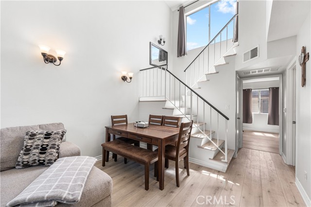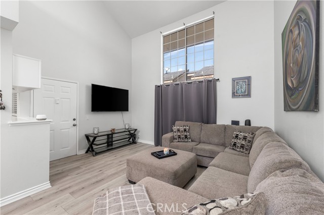 Don't miss the chance to call one of the most sought-after condos in the community your own. From the moment you walk in, you're greeted by soaring ceilings and abundance of natural light that creates a bright, uplifting space you'll love coming home to every day. The open concept kitchen, complete with stainless steel appliances, flows effortlessly into the living and dining areas-perfect for hosting friends or enjoying a quiet night in. Newly installed laminate flooring adds a fresh, modern, touch throughout. Unwind in the spacious primary bedroom featuring a walk-in closet, while the versatile loft-with its own closet-offers endless possibilities as a SECOND BEDROOM, home office, or creative retreat. Step outside to your private patio and start your mornings with a cup of coffee or wind down in the evening with fresh air and peaceful surroundings. Convenience meets comfort with a two-car garage and washer and dryer hookups. The community enhances your lifestyle with multiple pools, spa, playgrounds, and beautifully maintained grounds. HOA covers water and trash, and 24-hour security provides added peace of mind. This isn't just a condo-it's a place to live, relax, and truly feel at home.