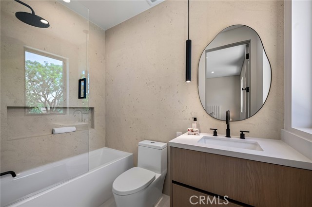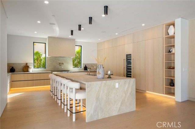 Step into a sanctuary of architectural brilliance where the serene energy of a Tulum resort meets the sophisticated pulse of L.A. Be the first to live in this extraordinary estate, completed in 2025, represents a rare alignment of artisanal craftsmanship and modern functionality in the heart of Encino. Beyond the private gated entrance, you are greeted by an imposing stone feature wall and soaring ceilings that create an immediate sense of grandeur. The interior is a masterclass in texture and light, featuring wide-plank European oak floors, hand-applied Venetian plaster, and custom millwork that reflects an uncompromising attention to detail. The heart of the home is a breathtaking gourmet kitchen, anchored by imported porcelain countertops and professional-grade appliances, designed for both the casual family breakfast and the most elaborate catered events. The adjacent dining room, with its gallery-style glass display and soft backlighting, sets a dramatic stage for luxury hosting. Life flows effortlessly to the expansive family room, where a statement fireplace provides a warm anchor for relaxed California evenings. Your private backyard serves as a five-star retreat, centered around a sparkling pool and spa. The heated outdoor kitchen and covered patio ensure that entertaining remains a year-round luxury. A significant highlight is the fully independent 2-bedroom attached ADU, which offers a versatile footprint for a high-end guest residence, a sophisticated home office, or a private wellness studio. The main level continues to impress with a dedicated cinema room for the ultimate movie night, a stylish mudroom, and an ensuite guest bedroom. As you ascend the floating staircase, you pass an illuminated indoor garden that brings a touch of nature into the home’s core. The upper floor is a private haven, featuring 4 ensuite bedrooms including a primary retreat that rivals the world's finest hotels, complete with a rooftop balcony, a spa-inspired bath with dual rain showers, and a massive walk-in closet. Additional amenities include a smart home system with speakers, security cameras, alarm, and intercom. This is not just a home, it’s a statement of elegance, artistry, and elevated living built and design by Luxury Home Builders Inc. Perfectly positioned within the coveted Encino Charter Elementary district and moments from the premier dining of Ventura Blvd. Schedule your private tour today to experience this statement of elegance firsthand.