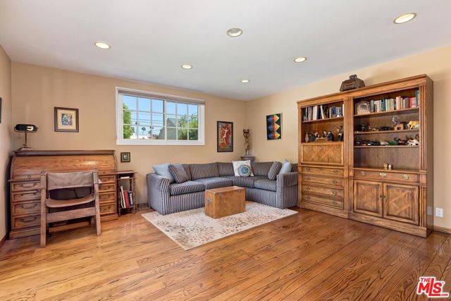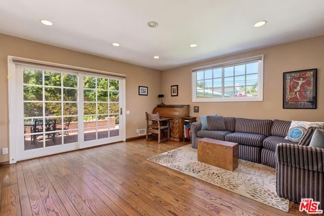 This uber charming 1.5 story Traditional north of Wilshire Blvd is in Trust and available for the first time in 64 years. Set on a 7,500 SF lot at the '50 yard line' between Wilshire Blvd and Burton Wy, this immaculate home exemplifies the meaning of unlimited potential. Natural light, high ceilings, French doors, and gleaming wood floors are featured. Tremendous open flow from the large vaulted-ceiling living room to the enormous dining room to the fabulous modernized center-isle granite kitchen/breakfast space and then to the deep yard with a lovely brick patio and lawns. A big step-down family room at the rear of the home which leads to the grounds through sliding French doors can readily be a 4th Bedroom. Presently, there are two generous bedrooms and two bathrooms downstairs including a sizable primary bedroom with a walk-in closet. Upstairs, there is one extremely large suite with a bathroom and peek-a-boo views. An oversized 2 car garage at the rear of the property uniquely affords convenient alley-access to vehicles. Fantastic curb appeal is an added bonus to the home along with its siting on a most coveted Jacaranda tree-lined road moments from the best of Beverly Hills and its "Golden Triangle" replete with world-renowned dining, shopping, hospitality, and ambiance. Welcome to the ultimate value of 2026.