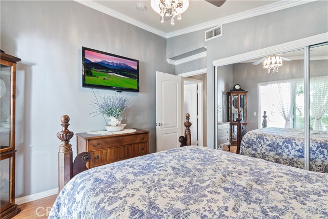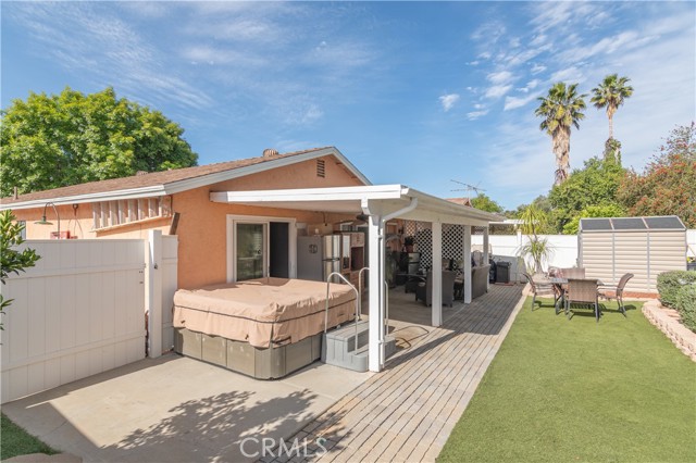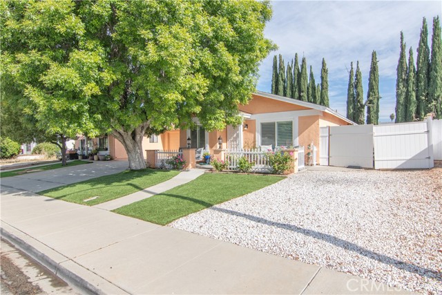 This Wonderful Quaint home is move in ready, 55 plus area and delightfully styled to your liking. Step into the Beautiful living room/great room with Crown molding and custom Paint with a cozy feel. This home has New Dual Pane and Luxury heat and cold proof windows. New Slider Doors also Heat and cold resistant. The spacious kitchen is light and bright with ample counter space and storage. The bedrooms are tastefully designed with a classy layout with ceiling fans and larger closets. This home comes with a Washer and Dryer and a 2 yr newer roof with a Relaxing Hot tub Spa for entertaining with a great covered patio the length of the home. Plus enjoy the newer turf grass with a tranquil Waterfall fountain listening to birds in the midst with a tangerine tree at your becon call. This one also has a nice sized shed and Ultimate Rv Parking with an attached Garage for convenience. An Awesome park nearby with gym Equipment,Basketball Court, tennis court, tables for a nice pic nic , close to shops and hospitals