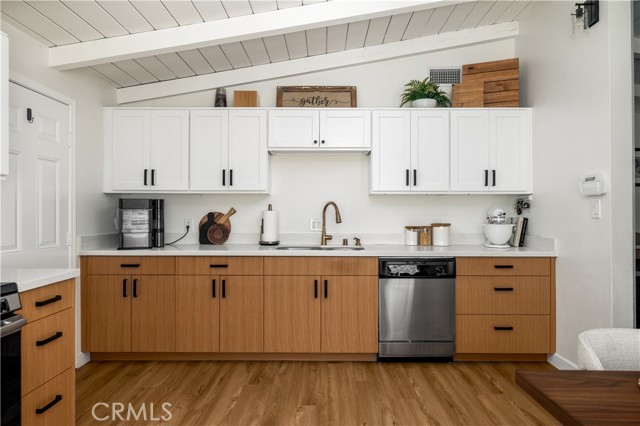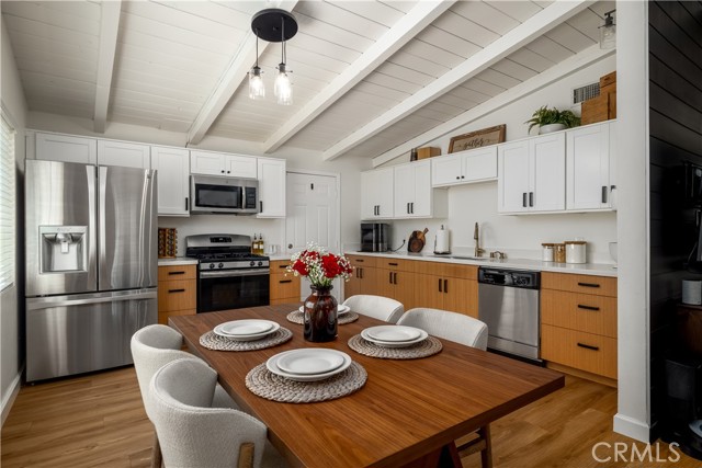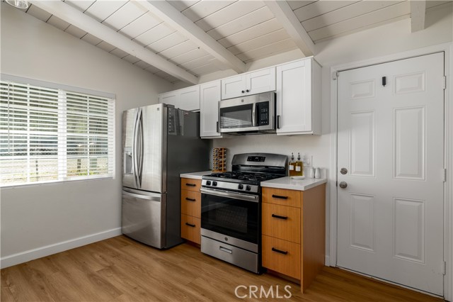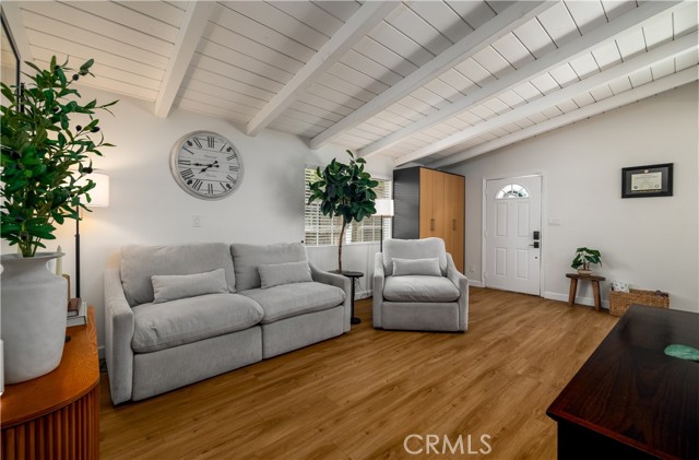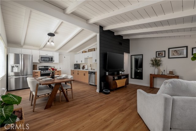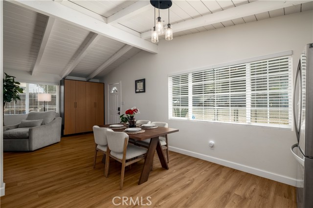 Charming and beautifully updated 2-bedroom, 1-bath home offering 858 square feet of thoughtfully designed living space in the heart of Lake Elsinore! This inviting property features stunning exposed beams that add warmth and character throughout. The updated two-toned kitchen showcases modern style and functionality, complemented by beautiful laminate wood flooring and updated baseboards that elevate the home’s overall design. Enjoy the added benefit of solar for energy efficiency and savings. Thoughtfully upgraded with impeccable taste, every detail reflects style and comfort. A perfect blend of modern updates and timeless charm—this home is truly move-in ready and full of personality.