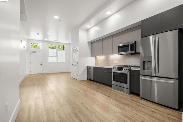 Welcome to the vibrant Dogtown Arts District, where 47 brand new condominium homes offer modern living at its finest! This desirable ground-floor live/work-style unit features a spacious, flexible floor plan, perfect for creative professionals, entrepreneurs, or anyone seeking a versatile home environment. These thoughtfully designed residences showcase soaring ceilings, abundant natural light, and striking contemporary finishes throughout. Step into a bright, open-concept layout with premium upgrades and sleek design touches. Spacious bedrooms include generous closets, and the home is equipped with in-unit washer and dryer hookups, air conditioning, and private outdoor space. Enjoy the convenience of secure garage parking and an unbeatable location with easy access to shopping, Highways 24 and 580, and the Bay Bridge, ideally situated at the Oakland/Emeryville border. Open House: Saturday 2–5 PM and Sunday 1–4 PM