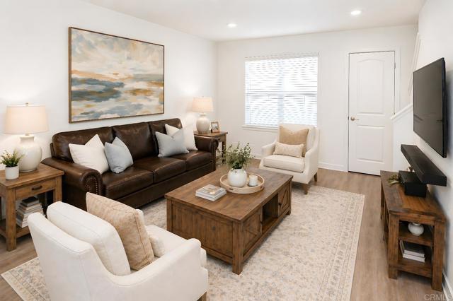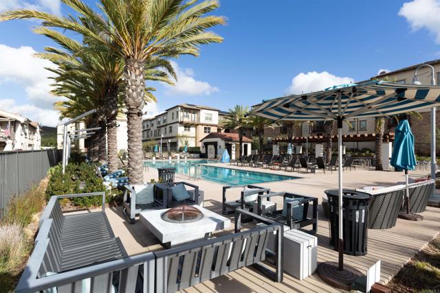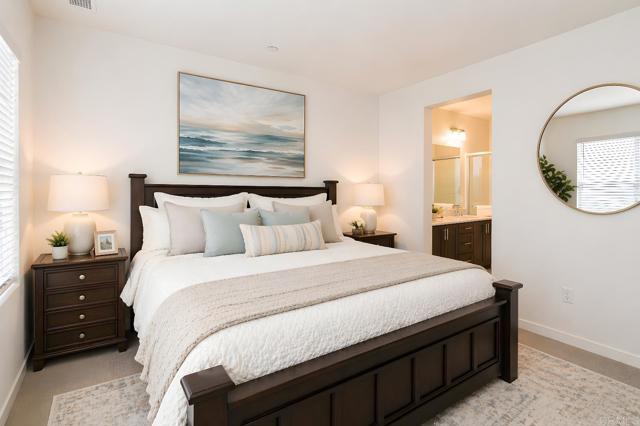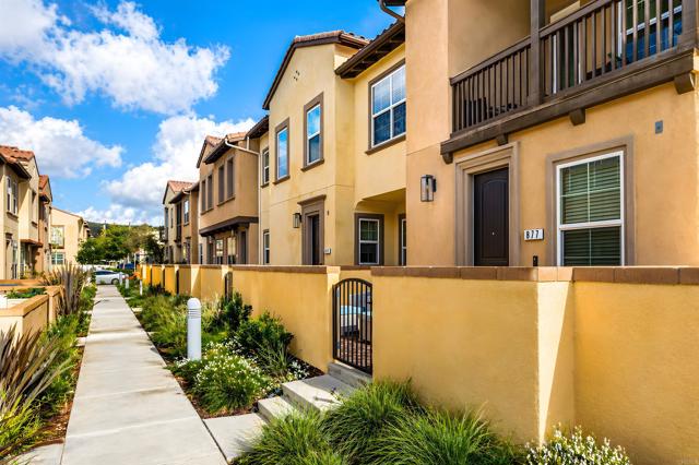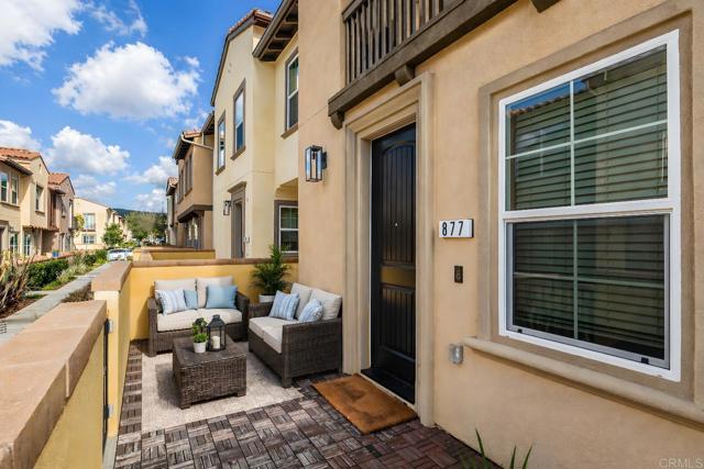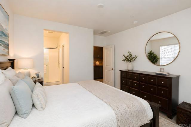 Welcome home to this modern sanctuary nestled within the gated community of Rancho Tesoro in North City San Marcos. Thoughtfully designed and built in 2021, this residence embodies the essence of contemporary California living—where comfort, efficiency, and flexibility come together seamlessly. This 2-bedroom, 2-bath, 1,251 sq. ft. home offers a highly functional layout enhanced by a versatile bonus space on the entry level—ideal for a home office, gym, media room, or additional living area. The main living level features an openconcept design connecting the kitchen, dining, and living areas. The chef-inspired kitchen includes quartz countertops, upgraded cabinetry, stainless steel appliances, and a peninsula with bar seating. The primary suite provides a comfortable retreat, complete with a walkin closet and a well-appointed ensuite bath featuring dual vanities and a spacious walk-in shower. A secondary bedroom and full bathroom offer additional flexibility for guests or extended use. Elevated features throughout the home include luxury vinyl plank flooring, upgraded carpeting, recessed lighting, a whole house fan, tankless water heater, fully paid solar, and an attached 2-car garage equipped with EV charging capability—delivering both comfort and long-term energy efficiency. Experience the perfect blend of modern design, flexible living, and everyday ease in one of North City’s most sought-after communities.