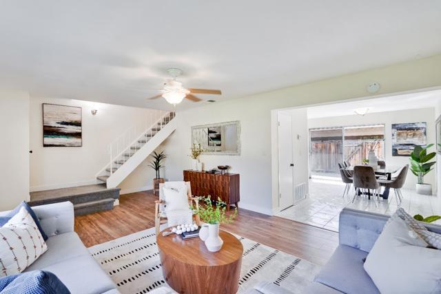 YES! 4 bedrooms AND 2 full bathrooms upstairs PLUS a half bath on the ground floor!!! The kitchen is ready for your culinary masterpieces with an electric oven range, microwave, dishwasher, refrigerator, exhaust fan, & garbage disposal. Enjoy your creations at the breakfast bar or the generously sized dining area - adjacent to the kitchen & living room or DINE ALFRESCO on your PRIVATE patio. The LAUNDRY/utility room off the kitchen adds CONVENIENCE (220V). Cooling is provided by window units and a ceiling fan in the living room. The furnace is NEW central forced air powered by gas. The home includes a half bathroom on the ground floor, a primary bathroom with a stall shower, and a hall bath with shower-over-tub. The upper floor features new LUXURY VINYL PLANK flooring in the bathrooms and NEW foot-comforting carpeting in the bedrooms and hallway/stairs. BEAUTIFUL grounds surround the home and there is also playground and basketball court for OUTDOOR FUN. It's a hop, skip & a jump from the Blossom Hill light-rail station and has easy access to HWYs 85, 87 and 280. Shopping, dining and services are also nearby. LOW HOA dues. This one won't last. You will LOVE IT. (Better pics coming soon!)