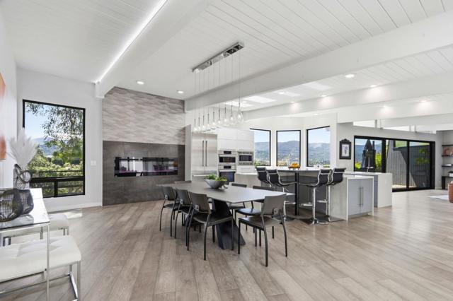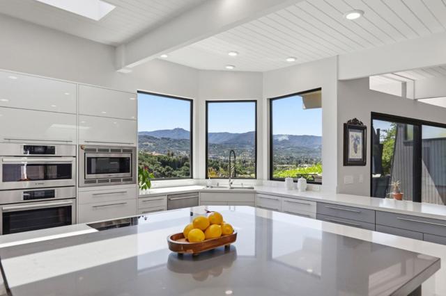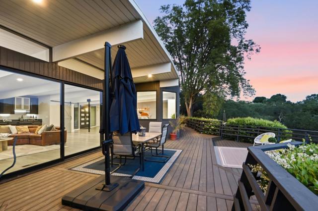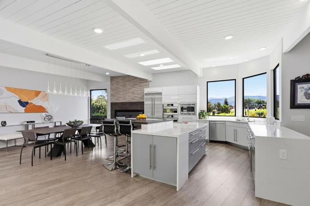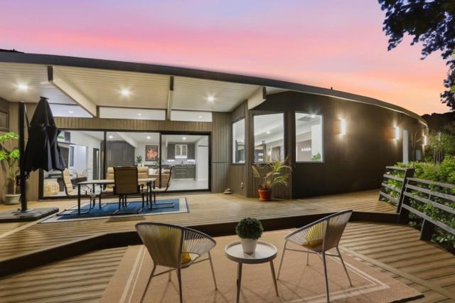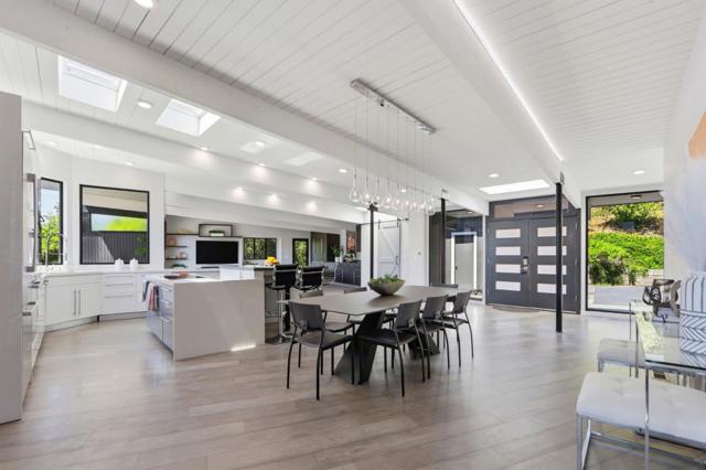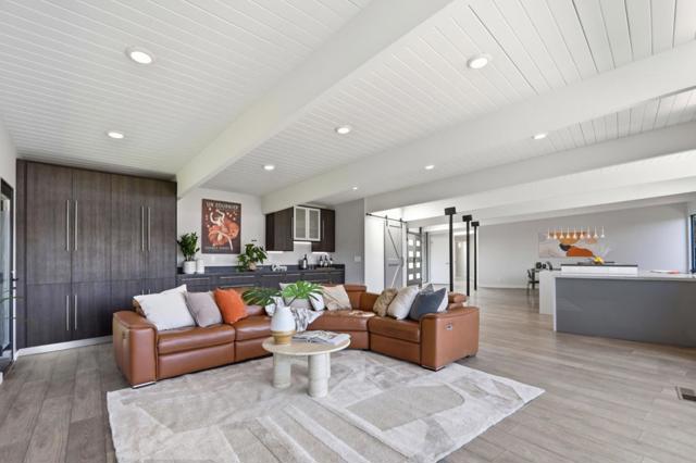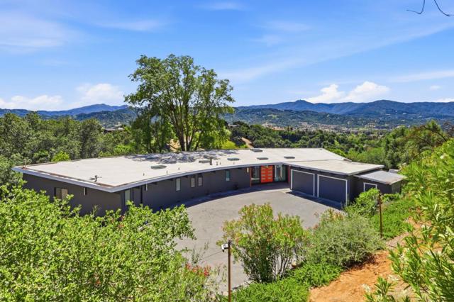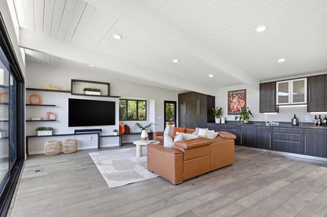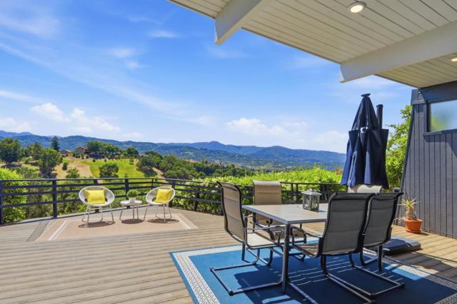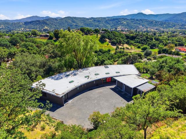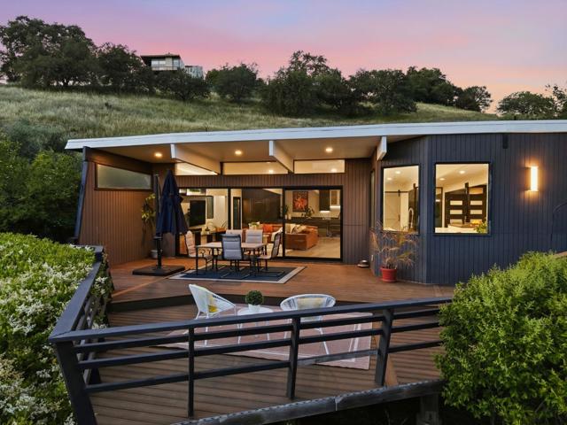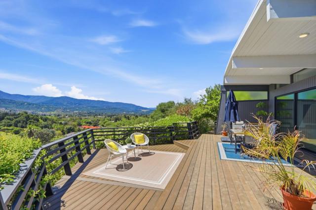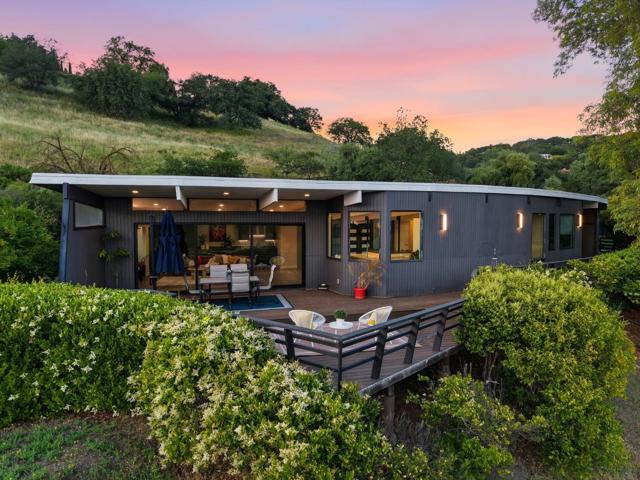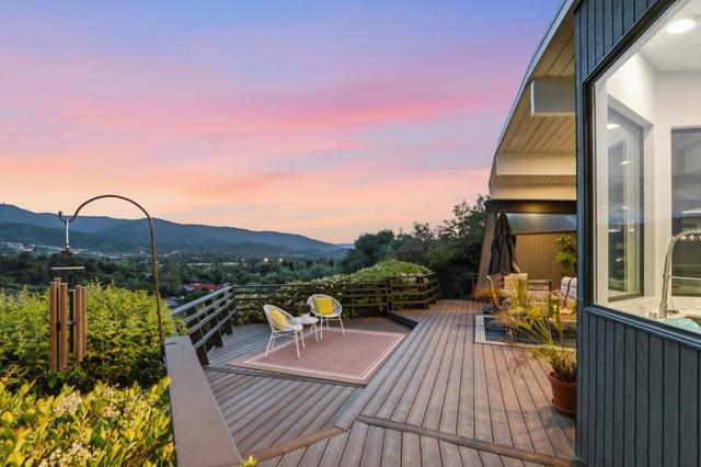 Experience elevated California living in this stunning Mid-Century modern single-level home gracefully set on over two private acres in the coveted Camden Hills of Almaden Valley. Designed to follow the natural contours of the land, this distinctive arc-shaped residence captures breathtaking panoramic views stretching from rolling hills to sparkling city lights and iconic Mt. Umunhum. The heart of the home is an impressive open concept great room where living, dining, and kitchen spaces flow effortlessly together. Entertain in style or relax in comfort with walls of glass opening to a view deck, perfect for sunset evenings. The chefs kitchen is functional, featuring sleek quartz surfaces, premium Bosch appliances, a large island, and a casual dining area. Step outside and discover a resort-like setting: wraparound decking, multiple entertaining areas, and lush grounds dotted with mature landscaping and fruit trees. Whether hosting gatherings or enjoying quiet mornings, every space is designed to take full advantage of the stunning surroundings. Private 473sqf ADU type structure for guests, office, fitness room or rental income. Tennis court. Extra storage. EV charger. Split the lot and build another home or ADU. Top Schools: Graystone, Bret Harte & Leland.