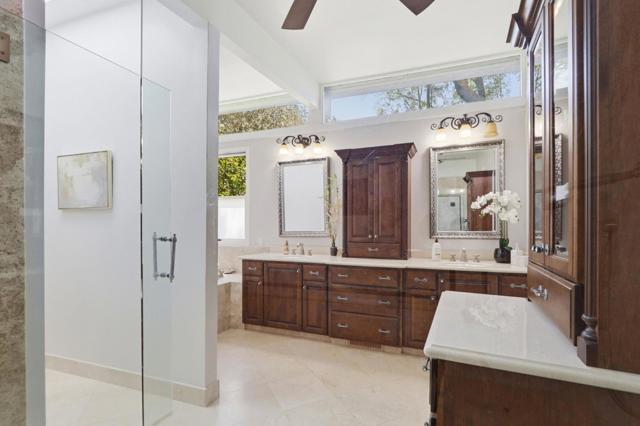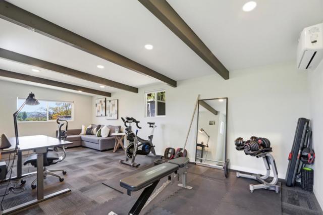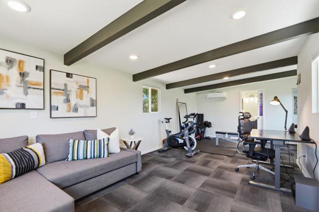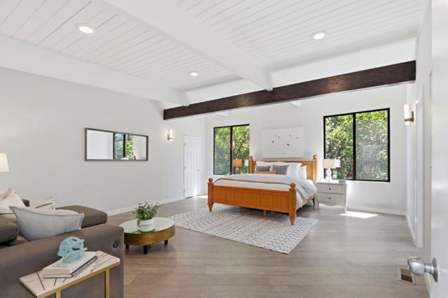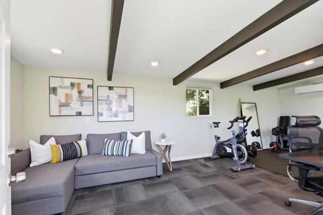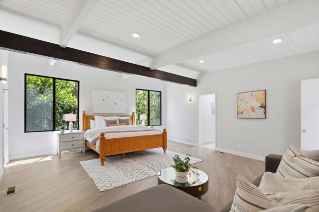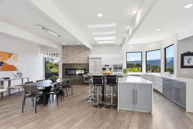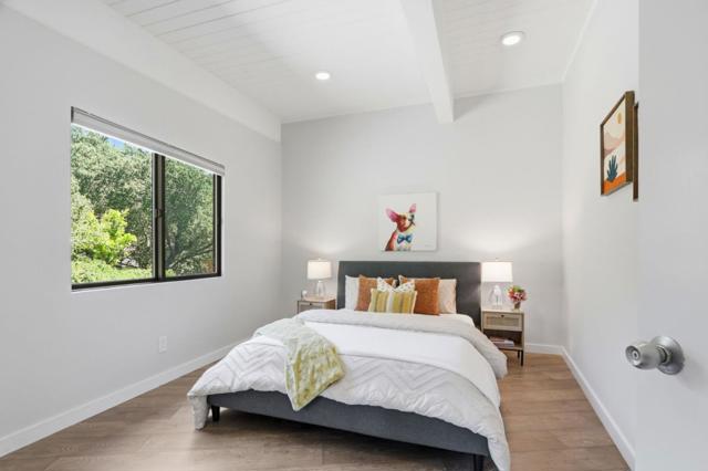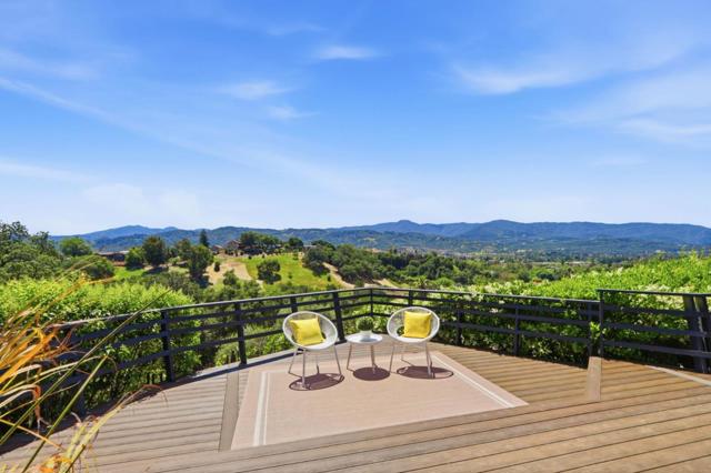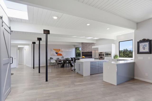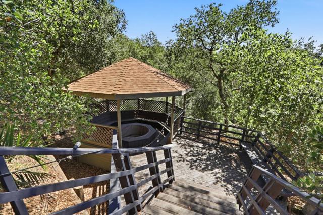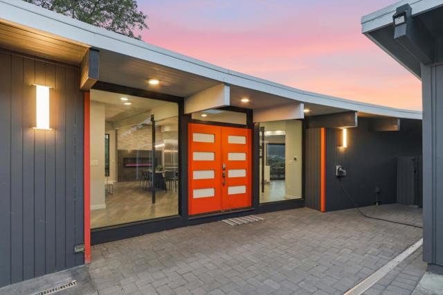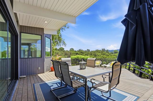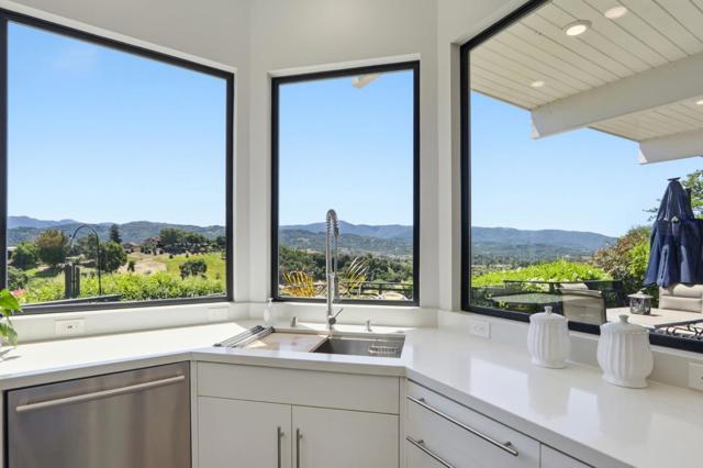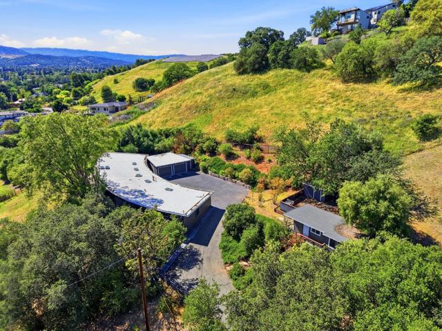 Experience elevated California living in this stunning Mid-Century modern single-level home gracefully set on over two private acres in the coveted Camden Hills of Almaden Valley. Designed to follow the natural contours of the land, this distinctive arc-shaped residence captures breathtaking panoramic views stretching from rolling hills to sparkling city lights and iconic Mt. Umunhum. The heart of the home is an impressive open concept great room where living, dining, and kitchen spaces flow effortlessly together. Entertain in style or relax in comfort with walls of glass opening to a view deck, perfect for sunset evenings. The chefs kitchen is functional, featuring sleek quartz surfaces, premium Bosch appliances, a large island, and a casual dining area. Step outside and discover a resort-like setting: wraparound decking, multiple entertaining areas, and lush grounds dotted with mature landscaping and fruit trees. Whether hosting gatherings or enjoying quiet mornings, every space is designed to take full advantage of the stunning surroundings. Private 473sqf ADU type structure for guests, office, fitness room or rental income. Tennis court. Extra storage. EV charger. Split the lot and build another home or ADU. Top Schools: Graystone, Bret Harte & Leland.
