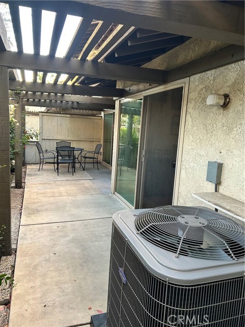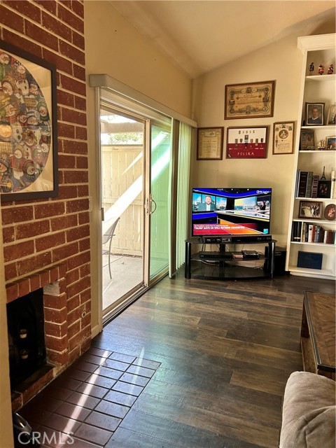 Welcome to this beautifully maintained single-level home offering comfort, convenience, and pride of ownership throughout. Ideally located directly across from the community pool, this residence is perfect for enjoying relaxing days and easy entertaining. Step inside to a spacious living area featuring vaulted ceilings, a cozy fireplace, and built-in shelving—creating a warm and inviting atmosphere. Crown molding and thoughtful details add to the home’s charm, while large dual-pane windows bring in natural light. The kitchen is well-appointed with granite countertops and comes complete with a stove, refrigerator, microwave, and dishwasher—ready for immediate use. Down the hall, you’ll find a full bathroom with in-unit laundry, including a washer and dryer. Access to beautifully landscaped grounds with walking trails throughout the community. The detached garage is conveniently located nearby for easy access, along with close proximity to the entry and mailboxes for added convenience. Situated in a desirable gated community, this home offers quick freeway access without the noise and is just minutes from shopping, dining, and everyday essentials. A wonderful opportunity to own a move-in-ready home in a well-kept and welcoming community.
