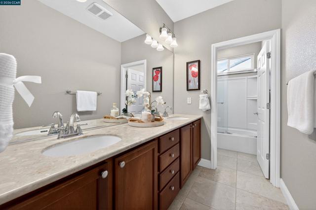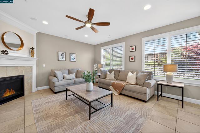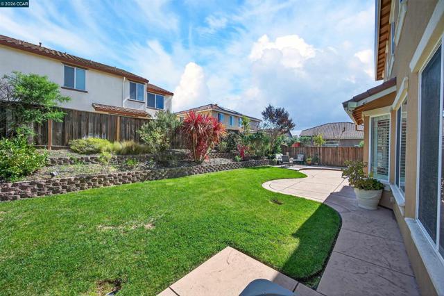Elegant home located in the prestigious gated community of Stonebrae Country Club, offering a bright and inviting open floor plan designed for both comfort and entertaining. The formal living and dining areas feature soaring ceilings and clerestory windows that fill the space with natural light. The gourmet kitchen is the heart of the home, complete with a large center island, granite countertops, rich cherry cabinetry, and stainless steel appliances, seamlessly flowing into the spacious family room with a cozy fireplace and views of the backyard. The main level includes a bedroom and full bathroom, along with a versatile office or media room—ideal for working from home or additional living space. Upstairs, the expansive primary suite offers a large walk-in closet and a luxurious bathroom featuring a soaking tub, separate shower, dual vanities with a seated vanity area, and a private dressing space. The second floor also includes four additional bedrooms, a full bathroom, and a convenient laundry room. Additional highlights include dual-zone HVAC, recessed lighting, surround sound, pre-wired media connections, and a tankless water heater. Enjoy the beautifully landscaped backyard and side yard with a patio, lawn, and fruit trees-perfect for relaxing or entertaining.