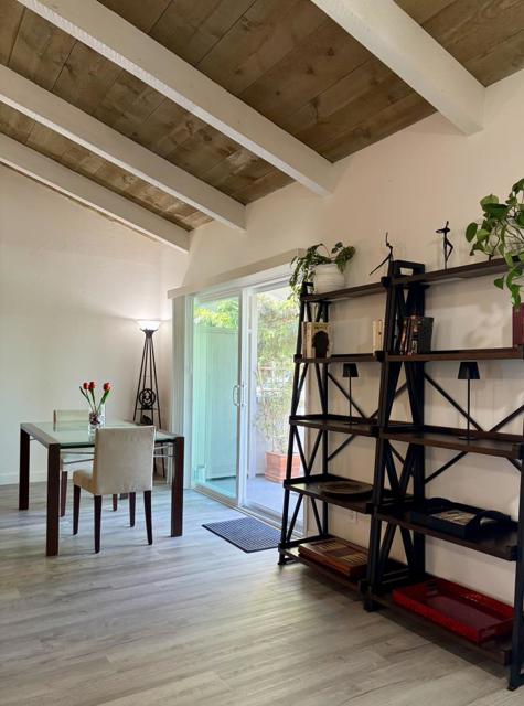 Top-floor condo with a private entrance, high ceilings, and exposed beams, offering a light-filled and airy living environment. Positioned toward the back of the complex, enjoy a quiet setting with a thoughtfully designed layout that enhances comfort and flow. The kitchen features granite countertops and thoughtful lighting, while the bathroom includes a practical layout with added storage. A spacious private balcony overlooks surrounding greenery, extending the living space outdoors. Additional highlights include assigned parking with storage and guest parking. A standout feature is the access to the nearby Rengstorff Park Community Center, with a gated entrance just steps away. Amenities include pickleball & tennis courts, fitness areas, barbecue areas, a playground and the Magic Bridge Playground. The complex further enhances the lifestyle with two private swimming pools, a clubhouse, fitness center, and landscaped greenbelt areas. Ideally located near major tech campuses, shopping, dining, and commuter routes, making it a strong option for both homeowners and investors. Located in a well-maintained, established community with completed structural inspections and a proactive HOA, offering long-term stability and comfort, creating a balanced and compelling place to call home.