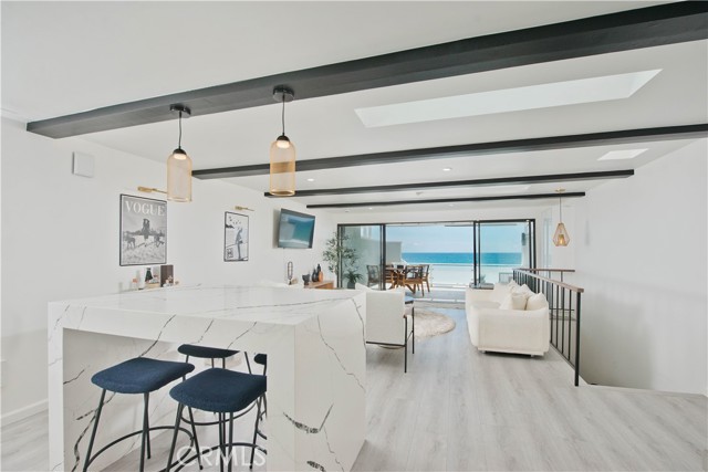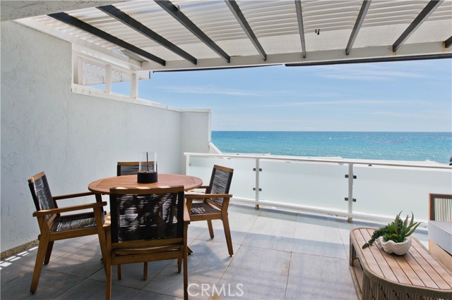 Experience coastal living at its finest in this beautifully updated beachfront residence in Malibu. Showcasing breathtaking ocean views from the main living areas, this home is designed to capture the essence of the Malibu lifestyle. The open-concept great room flows seamlessly onto an oversized oceanfront deck, complete with a trellis for shaded indoor-outdoor living, perfect for entertaining or simply enjoying the sound of the waves. The home has been enhanced with new flooring throughout, including the patio, creating a cohesive and refreshed coastal aesthetic. Three skylights fill the space with natural light. A newly added oversized island with countertop seating elevates both functionality and design. The home features three spacious bedrooms, each with its own en-suite bathroom, along with a powder room for guests. Recent improvements include new sliding glass closet doors in all bedrooms, brand-new recessed, wall, and pendant lighting throughout and a new water softening system for enhanced comfort and convenience. The updated kitchen and bathrooms offer both style and functionality, with radiant heated floors in the bathrooms for added luxury. Wake up and fall asleep to the soothing rhythm of the ocean, with direct beach access just steps from your door. The gated community offers two beautiful sandy beaches on either side, creating a sense of privacy and tranquility. Enjoy nearby County Line Beach, known for its excellent surf and windsurfing. Additional amenities include a private two-car carport, a paddle tennis court, and a sport court with a basketball hoop. Whether you're looking for a full-time residence or a weekend retreat, this is a rare opportunity to own a slice of Malibu!