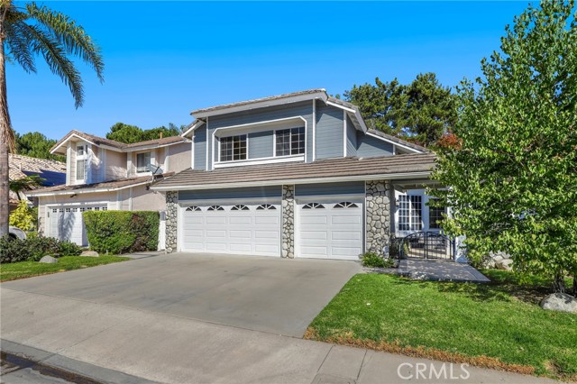 Welcome to this beautifully maintained residence in Mission Viejo’s desirable Auburn Ridge community. A grand double-door entry opens to a bright, airy floor plan featuring formal living and dining rooms designed for effortless entertaining. The heart of the home is the spacious kitchen, which flows into an inviting family room anchored by a cozy brick fireplace. Sliding glass doors lead to an cozy backyard with a brick-lined patio, offering an ideal setting for outdoor gatherings. The main level provides ultimate convenience with a full-size laundry room, a remodeled powder room, and direct access to a three-car garage. Upstairs, the primary suite serves as a private retreat with vaulted ceilings, a walk-in closet, and an ensuite featuring dual sinks, a soaking tub, and a walk-in shower. Three additional guest bedrooms share a well-appointed hall bath with dual sinks. Residents enjoy a premium lifestyle near award-winning schools, the Wilderness Area Trailhead, and elite dining. Plus, take advantage of Lake Mission Viejo membership, granting exclusive access to boating, fishing, swimming, and the famous summer concert series.