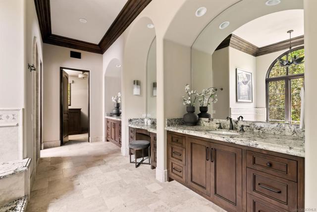 An Extraordinary Opportunity: A single-level Modern Mediterranean on a fully usable acre. Four ensuite bedrooms, a stunning office, with the guest suite thoughtfully positioned in its own wing for privacy. The floor plan is intentional — open, connected, and effortless to maintain. Pocket doors dissolve the line between the living room and outdoor living area, where a saltwater pool, spa, flat artificial turf, and mature landscaping with fruit trees create the kind of backyard that works for everyone. For the buyer who wants the location, the lifestyle, and the ease — this is the one. A Mark Radford designed and Paul Munsch built masterpiece in a tranquil and serene location on the West side of the Covenant.