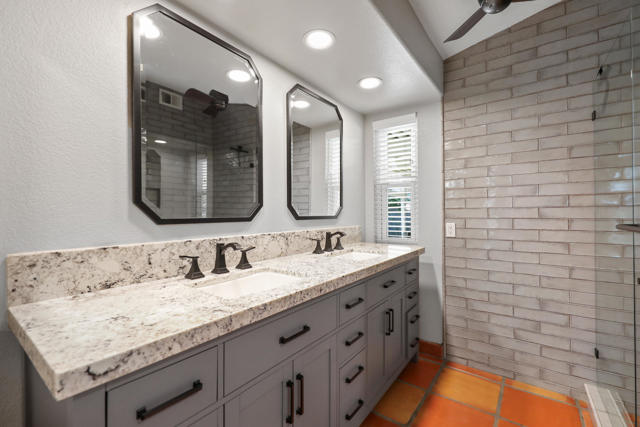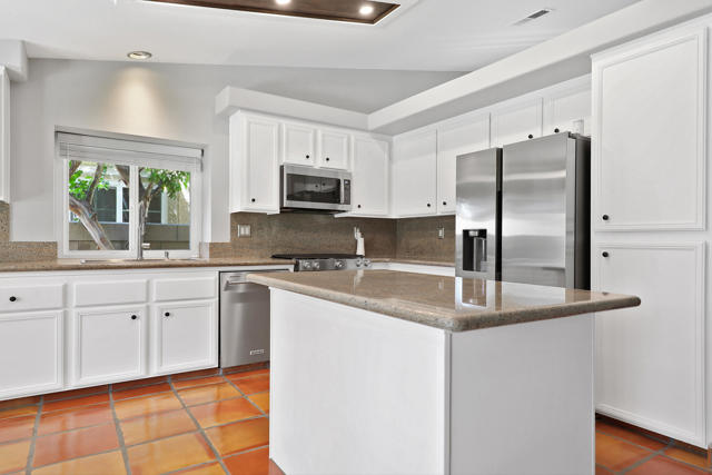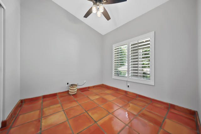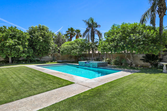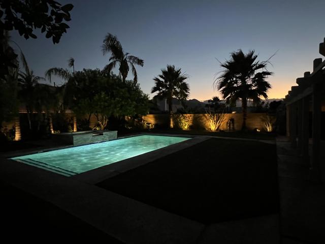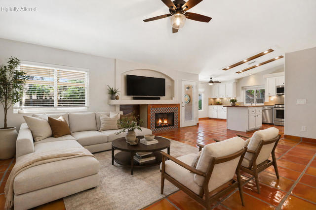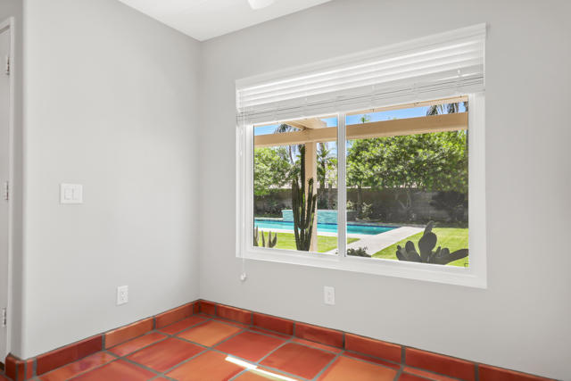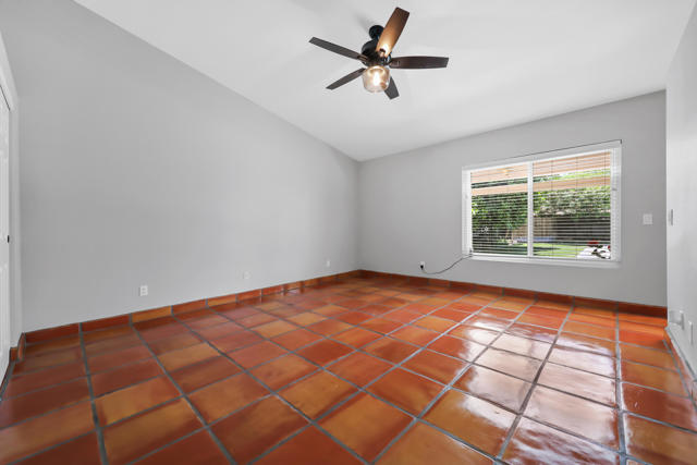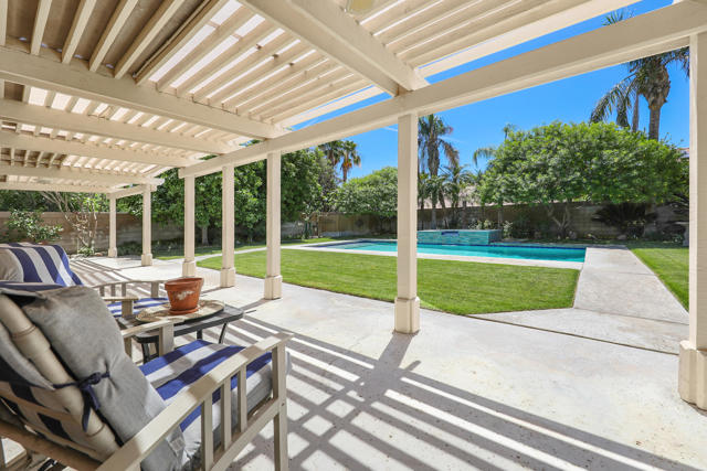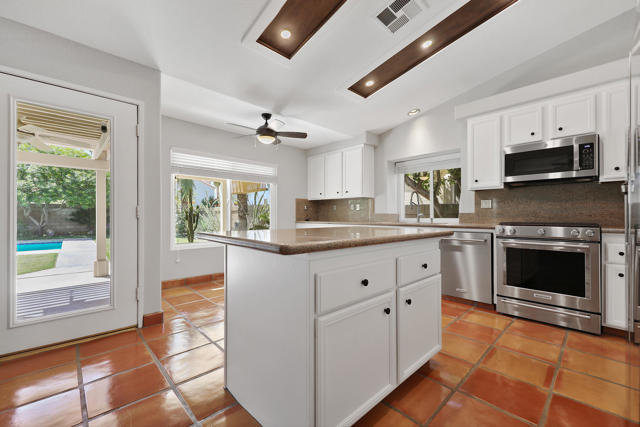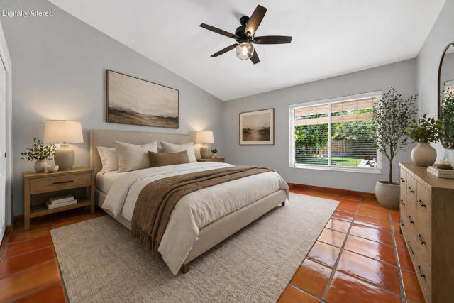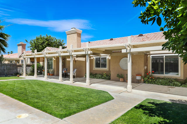 Open house 11:00 -2:00 Saturday and Sunday 4/24 and 4/25. Highly sought-after gorgeous home in the Topaz neighborhood conveniently located within walking distance to prestigious International Baccalaureate (IB) schools: Amelia Earhart Elementary, John Glenn Middle School and La Quinta High School. Designed for entertaining and everyday enjoyment, the recently upgraded PebbleTech saltwater pool and spa is the centerpiece of a beautiful back yard oasis. Updated pool pump, filter, heater, LED lighting, and pool chiller. Enjoy the dramatic mountain views and the lush landscaping and mature fruit trees in the expansive yard. This house was remodeled with Saltillo tile flooring throughout. Both bathrooms were totally renovated with walk-in shower, deep soaking tub, and spectacular tile and counter work. All windows were replaced, new shutters / blinds, upgraded 200A electrical panel, new attic fan, EV Charger. The living and dining room leads into an expansive family room with cathedral ceilings and lots of natural light. The upgraded kitchen area is complete with new appliances, center island and convenient breakfast nook, as well as granite counter tops. Wonderful neighborhood with no HOA dues. Perfect for a family, as a vacation home, or an investment / rental opportunity. This home sells itself.