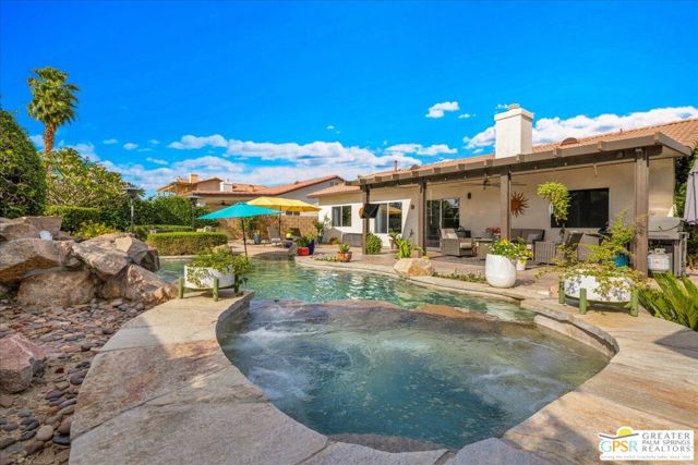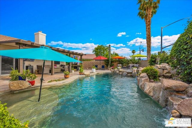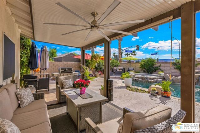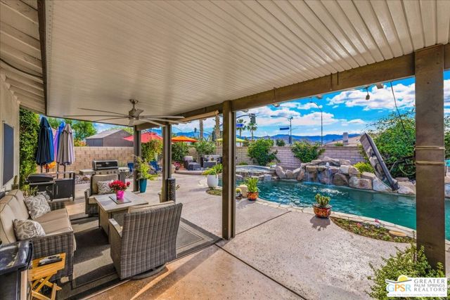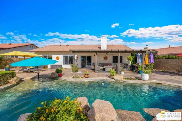 Welcome to 43535 Roebelenii Way in Indio, a comfortable 3-bedroom, 2-bath single-family home with 1,653 SqFt of living space on a generous 8,276 SqFt lot, and 2 car garage. Built in 2004, this pool home offers many features buyers are looking for today: owned land, NO HOA dues, Mountain Views, no power lines, a private pool and spa, low-maintenance landscaping, and a quiet neighborhood close to schools, parks, shopping, and local businesses. The backyard is the heart of the home, featuring an oversized pebble Tec pool and spa with a water feature, a built-in gas fire pit, and an Aluma wood-covered patio with a ceiling fan for outdoor dining, weekend barbecues, or relaxing with family and friends while enjoying the beautiful mountain views. The low-maintenance landscaping was designed for easy care, helping keep the yard attractive without requiring a lot of time, water, or upkeep. That means less maintenance, fewer monthly expenses, and more money left in your pocket. Inside, the home offers a practical and easy-to-live-in floor plan with great separation. The primary bedroom is located on one side of the home, while the two additional bedrooms and second bathroom are on the opposite side, with the living room and kitchen in the center. This layout works well for families, guests, roommates, or anyone who wants privacy and comfortable everyday living. The HVAC system has been replaced and is approximately 10 years old. With no leased items, owned land, and no monthly HOA dues, this home offers more freedom, a lower cost of ownership, and more money back in your pocket compared to many other properties. This home is also well-positioned for everyday convenience and the Indio lifestyle. Nearby schools include Carrillo Ranch Elementary School, Colonel Mitchell Paige Middle School, and La Quinta High School. Local parks, including Miles Avenue Park, North Jackson Park, South Jackson Park, and Shields Park, offer playgrounds, walking paths, sports courts, picnic areas, shaded spaces, and family-friendly outdoor activities. Everyday shopping, groceries, restaurants, and services are also nearby, including Walmart, Ralphs, WinCo Foods, and Costco in La Quinta. The home is also less than 6 miles from the Empire Polo Club, home to world-famous events such as Coachella and Stagecoach, adding another local lifestyle perk while still offering a quiet neighborhood setting. If you are looking for a home with a private pool and spa, owned land, NO HOA, mountain views, a large lot, low-maintenance landscaping, and a family-friendly location close to schools, parks, and shopping, this home is a great opportunity. Short-term rentals may be permitted in the City of Indio, subject to City approval, permit requirements, and applicable regulations. Buyer to independently verify all short-term rental eligibility and use requirements with the City of Indio.