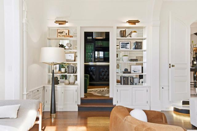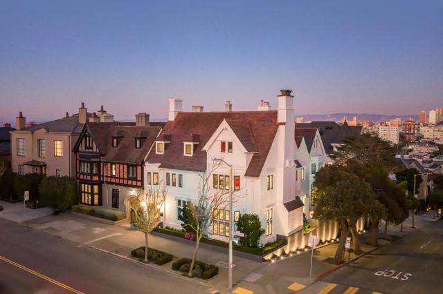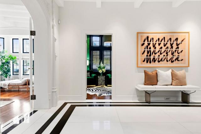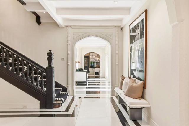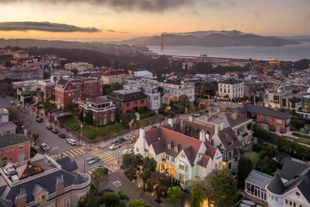 Commanding a premier south-facing corner atop Pacific Heights, this stately Tudor Revival residence is defined by timeless architectural elegance. Built in 1933, the home embodies exceptional craftsmanship seamlessly blending historic pedigree with modern refinement. Showcased in the 1999 SF Decorator Showcase, the homes upper level was opened to reveal a dramatic central staircase. A 2006 renovation introduced radiant heating, a gourmet kitchen with adjoining family dining, and a private guest apartment. The main level is devoted to grand-scale living and entertaining, highlighted by soaring ceilings, exposed beams, and a sculptural carved staircase. A marble hall connects the formal rooms and courtyard. Upstairs, a single-level layout offers an expansive primary suite with sitting room and dual dressing rooms, 2 additional en-suite bedrooms, a fireplace office, & laundry w/kitchenette. The top level features a wood-paneled library, billiard room with bar, media room, and flexible gym or guest suite. A lower-level apartment offers private access. Moments from the Presidio, Alta Plaza, Lafayette Park, and the boutiques and dining of Pacific Heights, this is a rare opportunity to own a distinguished architectural estate in one of San Francisco's most prestigious enclaves.