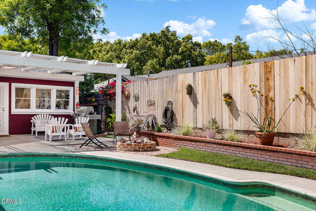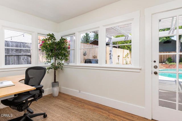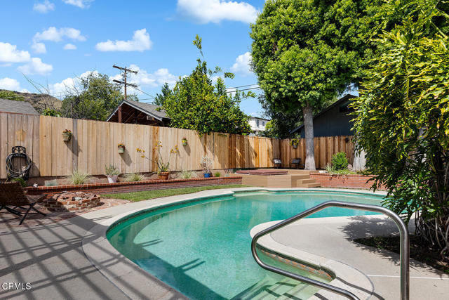 Set on one of Eagle Rock's most picturesque streets - lined with mature camphor trees and just north of Colorado Boulevard - this classic 1920 traditional bungalow offers the kind of setting and soul that's increasingly hard to find.A welcoming front porch sets the tone, leading into a home rich with original character: wood-frame windows, hardwood floors, a spacious living room anchored by a decorative fireplace, and a formal dining room with a built-in buffet. The updated kitchen blends seamlessly with the home's classic style and overlooks the backyard, while a separate laundry room adds everyday convenience.The layout offers flexibility, with two front bedrooms sharing a full hall bath, a third bedroom off the dining room, and a light-filled fourth room - currently used as a home office - lined with windows. A three-quarter bath off the laundry room serves the rear of the home.Out back, the large, flat lot unfolds into a private retreat, complete with a covered patio, pool, separate hot tub, and garden beds. A long driveway leads to a detached two-car garage with additional workshop and storage space.Lovingly cared for by its current owners since 2001, this home has been a true gathering place - host to front yard movie nights, crab boils, and years of connection within the neighborhood. Located within the sought-after Eagle Rock Elementary district and moments from the neighborhood's favorite shops and restaurants, this is a rare opportunity to step into a home that offers both character and the kind of everyday lifestyle that makes Eagle Rock so special.