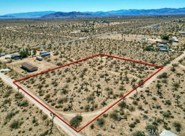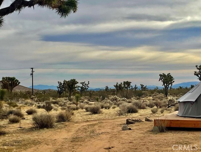 Fall in love and discover the endless possibilities of this remarkable 2.5 acre parcel. The water meter infrastructure is on site and will need to be connected. Power conveniently close by. As a bonus, a 13' Regatta Bell tent is available and can be perched on the charming wood deck. This wonderful retreat invites you to immerse yourself in the breathtaking surroundings, providing a perfect spot for relaxation and or weekend getaways. The strategic location is just off of a main highway, ensures easy accessibility and privacy, making your journey to this peaceful haven a breeze. Close to Pioneertown, the Joshua Tree National Park, The Integratron, as well as a quick drive to the local farmers markets, shopping and restaurants. Whether you envision building your home, creating a retreat, or simply embracing the serene desert landscape, this 2.5 acre parcel offers it all. (Seller paid for architectural drawings for an 800 sq ft 2 bed 1 bath home. Ask agent for details) Thank you for showing.