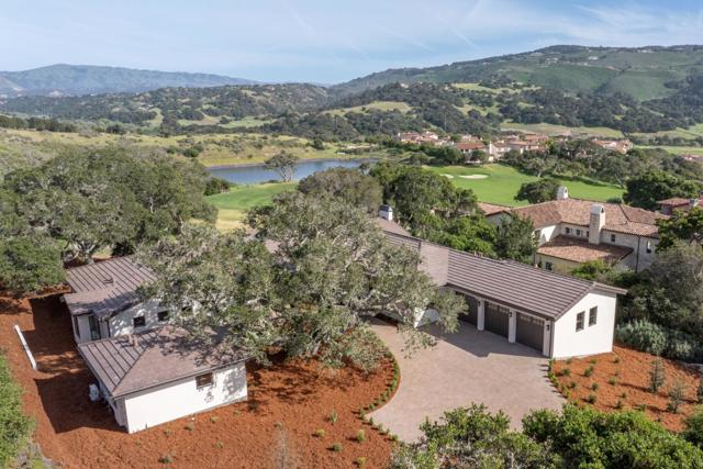 Centrally located in the gated community of Pasadera, this new single-level home plus detached 400 sf guest house offers access to Monterey, Carmel, Pebble Beach, Salinas, and Monterey Regional Airport. Set on a 0.6-acre lot, the property features mature oak trees and views of the 17th hole and mountains, with the home positioned for privacy. This well-designed home offers privacy, elegance and comfort. The open floor plan includes high ceilings, expansive windows and natural light. The primary suite offers a fireplace, radiant heated floors and a walk-in closet. The kitchen is equipped with a walk-in pantry and premium Thermador appliances, including a 48-inch refrigerator and range, microwave drawer, dishwasher and built-in coffee maker. Living spaces include a dining area, family room with fireplace, and a great room for entertaining. Additional features include three private suites, a laundry room, mudroom with storage and a secondary refrigerator, and a powder room. An oversized three-car garage, attic space, and golf cart garage provide ample storage. With no interior steps and a curbless primary shower, the home supports single-level living. Solar and EV charging connections are included. ADU has its own address and full kitchen, bathroom, laundry, and walk-in closet.