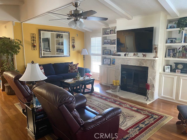 ** Wonderful Triple wide home in Lake Park Brea. This home is truly ready to move in to. The Formal Entry has a Closet for Guest's coats or other items. The stained glass window allow additional lighting for the entry and added warmth. It's a larger home at 1996 sq ft. There is no exposed paneling as the walls are all smooth and finished. The open Living Room and Dining Room each have Beamed and Vaulted Ceilings. The working fireplace with mantle are not only beautiful, but charming as well. Along each side of the fireplace are attractive and useful built-ins for books, display pieces, or mementos. At one end of the "Great Room" is a built-in-desk with gorgeous glass front cabinets above. The windows in the home have Plantation Shutters. The Kitchen has been updated with appliances and Granite countertops. There is also a double door pantry in the kitchen. The additional dining area adjacent to the kitchen has great views to the patio and the winding greenbelt. The built-in hutch in the dining area adds lots of additional storage for Special items to display or additional storage. The Main Suite is quite large and has a double walk-in closet. Off the Bedroom is the Main Bath with a large EZ step in shower, a soaking tub, Double sinks with vanity, plus a huge linen and clothing closet. The Guest Suite has it's own private bath. The Laundry Room is complete with the Washer, Dryer, second refrigerator, and a built-in desk area. Off the laundry is a nice sized half bath. The Beautiful Patio is covered and gated for enjoying the family or neighborhood. Both the Patio, front planter area, and walkway have lovely stone work. The Updated HVAC system, roof, flooring, etc., and water heater make this home ready to enjoy. There is a nice sized shed for storage or possibly a workshop. The Side-by-Side parking is wonderful if you have more than 1 car. You can have your friends visit or even have a place for your own Golf Cart. Well maintained home and yard -Main Entry is via the Lovely Covered Patio/Deck - Planters around the home allow for Gardening and your own Fruit trees - Scenic greenbelts and winding walkways throughout the Park lead to the Sparkling Lake and Clubhouse nearby - Enjoy your leisure lifestyle! Fun includes: Parties in the Recreation Pavilion, Bingo, Bunco, Fishing, Library, Billiards, Exercise Room with newer equipment - Dinner Events - Potlucks, Casino Outings, Pool & Spa, Tennis, Pickle-ball, Holiday Cart Parades and more!