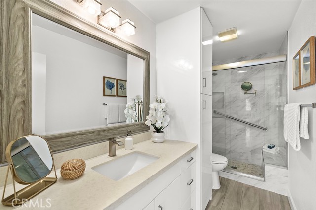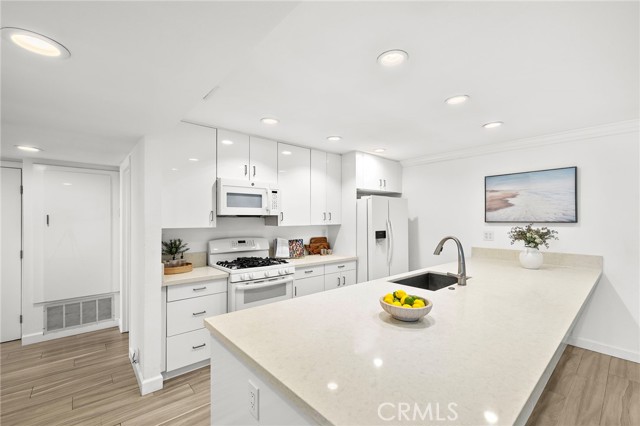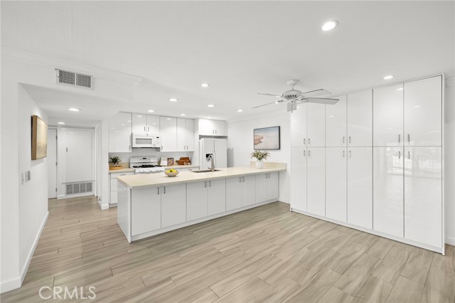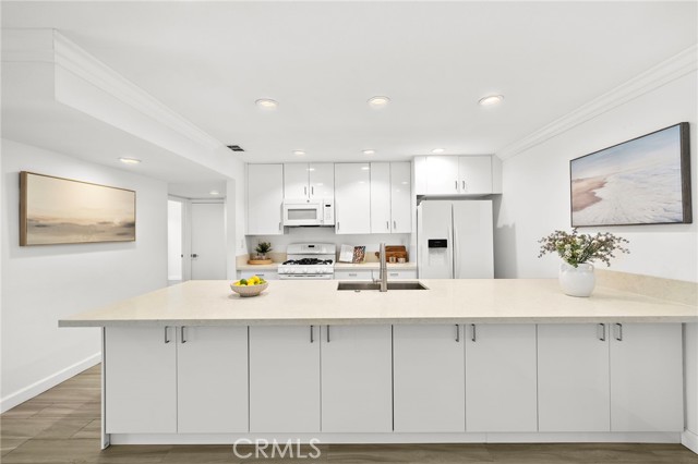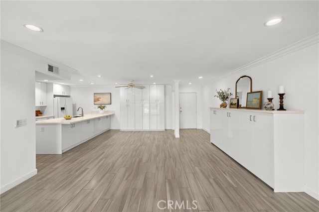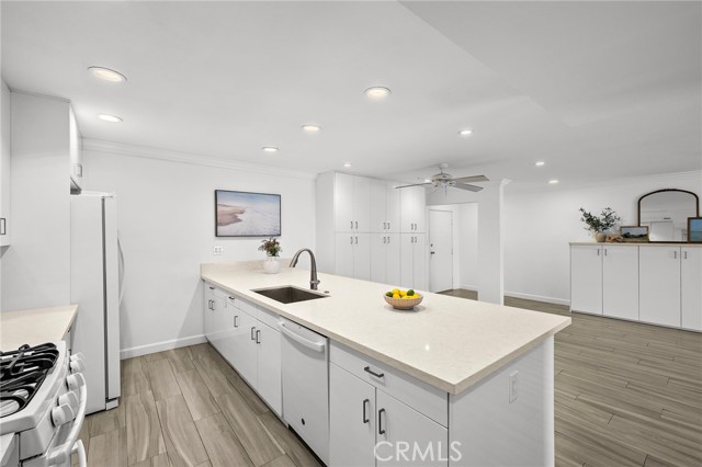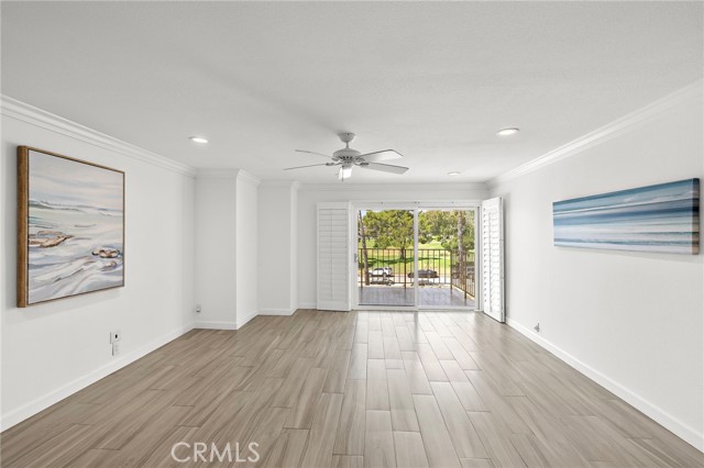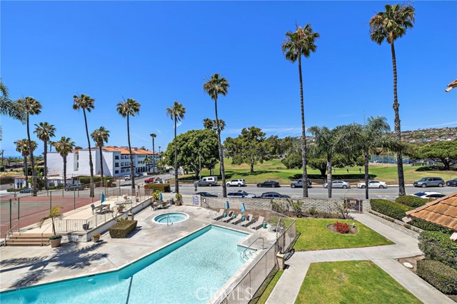 Top-floor living in Ocean Fairways with the kind of views and updates that rarely come available. Set on the penthouse level with no one above, this remodeled two-bedroom, two-bath residence offers 1,326 square feet of single-level living with sweeping views of the San Clemente Municipal Golf Course, rolling hills, city lights, Catalina Island, and the ocean beyond. Large windows and a private covered balcony bring in natural light and make the most of the coastal setting. Inside, the open living area connects seamlessly to the dining space and upgraded kitchen, creating an easy everyday layout. Quartz countertops, modern cabinetry, and a large center island with added storage anchor the kitchen, while wood-look tile flooring, crown molding, plantation shutters, and triple-pane windows carry throughout the home. Both bedrooms offer comfortable proportions and generous storage. The primary suite includes an updated bathroom with a large custom-tiled walk-in shower, while the secondary bathroom has also been remodeled with matching quality and function. A dedicated interior laundry area adds convenience. Ocean Fairways is a gated community with amenities that include pool, spa, tennis courts, fitness center, sauna, clubhouse, and secure building access. HOA dues cover several major ownership expenses, adding strong day-to-day value. The location is one of the community’s biggest draws. Positioned directly across from the San Clemente Municipal Golf Course, the home is also just minutes from Calafia Beach Park, Downtown San Clemente dining and shopping, coastal trails, and local beaches. The home includes one garage parking space with storage, plus one additional space in the private lot.