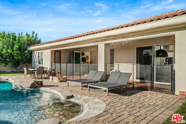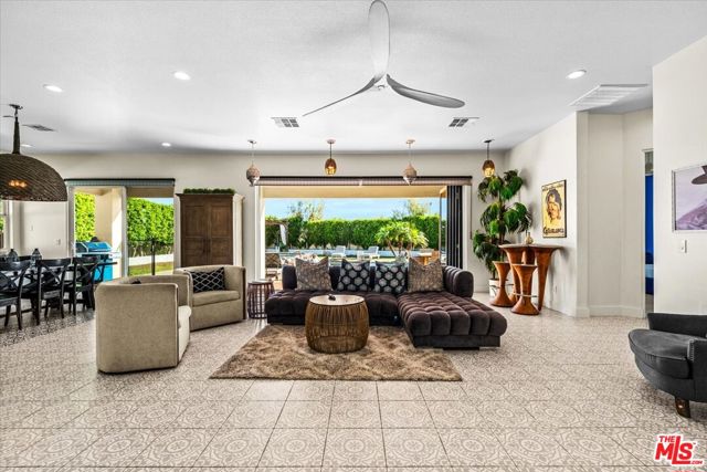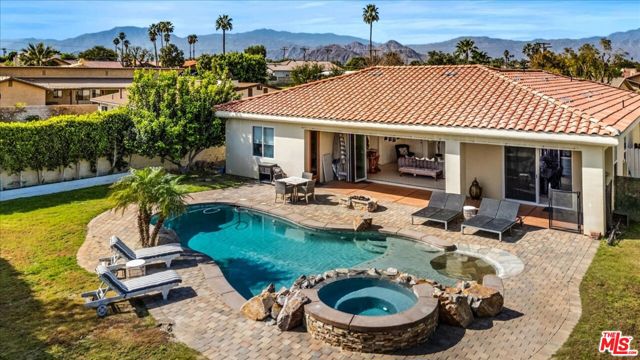 Welcome to 41680 Jamaica Sands Drive in the heart of Bermuda Dunes, a beautifully updated, turn-key fully furnished desert retreat offering seamless indoor-outdoor living and an exceptional layout. Thoughtfully designed for both comfort and entertaining, the home features expansive pocket sliding glass doors that completely open the back of the house to the outdoor living area, creating a true resort-style experience. Step outside to an incredible zero-edge saltwater pool and spa set within a private backyard framed by mature ficus hedging, providing both serenity and seclusion. Inside, the floor plan offers ideal separation of space, with a spacious primary suite with custom marble over-sized shower and spa tub privately situated away from the guest bedrooms perfect for hosting family and friends while maintaining your own retreat. The home also includes a highly desirable three-car garage, offering ample room for vehicles, storage, or recreational gear. Located in a prime Bermuda Dunes location close to golf, dining, and the best of the desert lifestyle, this home delivers the perfect balance of privacy, design, and convenience. Perfect for your primary residence, vacation home or investment property.