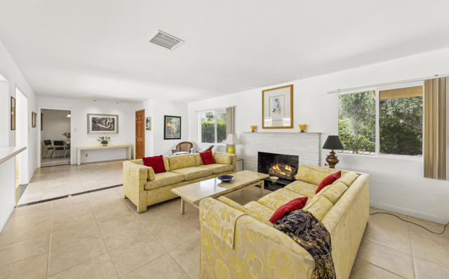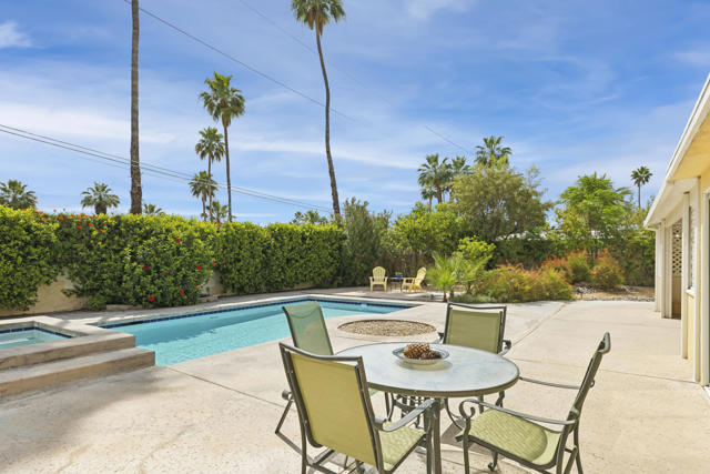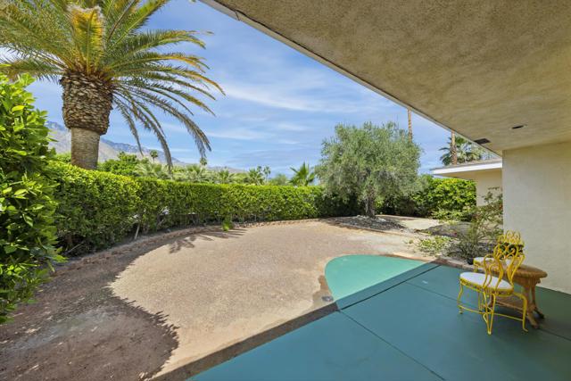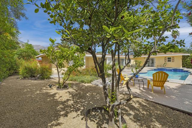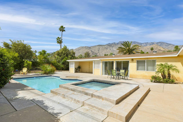 This charming mid-century home in the desirable El Mirador neighborhood is ready for its new owners. Situated on a large cul-de-sac lot, this property showcases stunning mountain views from both the front and rear yards, offering significant privacy among friendly neighbors. Step inside to a well maintained 3 bedroom 2 full bath home featuring dining room, family room and separate living room. Expansive sliding glass doors open to a. newly plastered and tiled pool and spa with water feature and mature lush landscaping.