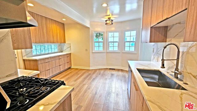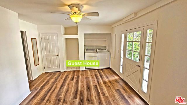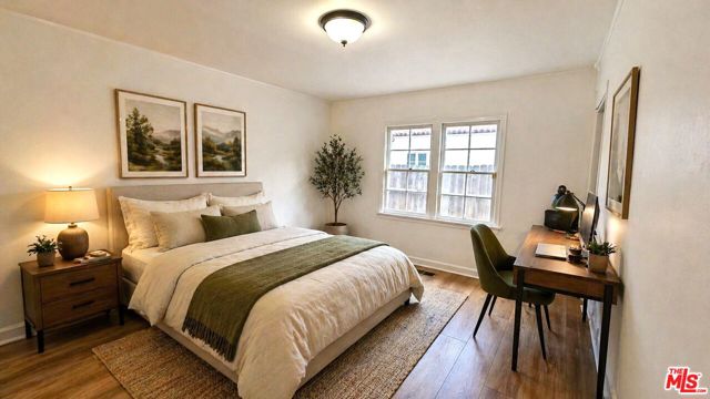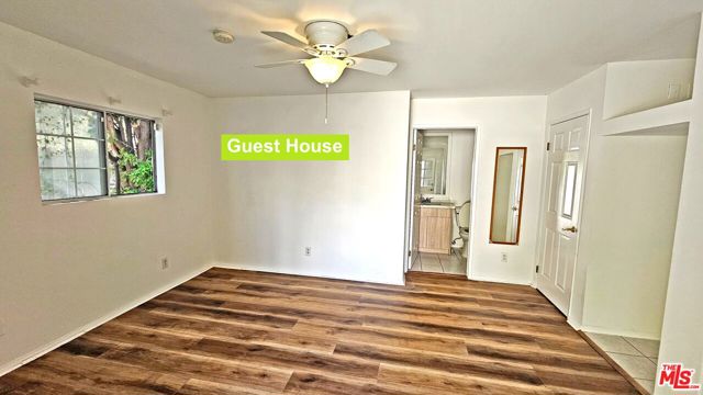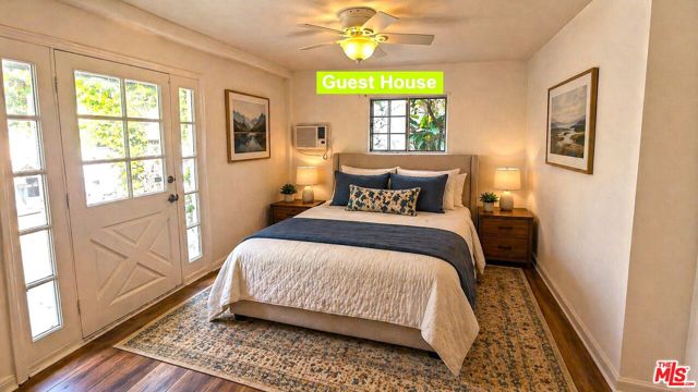 Beautifully maintained 4-bedroom, 3-bath home in a prime Beverly Hills location. The fourth bedroom is a detached guest house featuring its own bathroom with shower, space for a refrigerator, storage area, laundry area, and a comfortable living space, ideal for guests, extended family, or rental potential.The main home offers a spacious living room with high ceilings, cathedral windows that fill the space with natural light, and a wood and gas-burning fireplace flanked by elegant wet bars, perfect for displaying glassware or entertaining. The dining area accommodates a large table and opens through French doors to a private patio near the driveway.The kitchen has been tastefully updated with new soft-close cabinets and drawers, sleek quartz countertops, and modern finishes. It includes a dishwasher, stainless steel stove, range hood, and designated space for a refrigerator. Recently remodeled flooring throughout the home adds a fresh, contemporary feel.The primary bedroom features three large closets, providing ample storage. Additional bedrooms are generously sized, comfortably fitting queen beds with good closet space.The property offers ample parking with a spacious driveway and additional gated parking area for added convenience and security. Curtain rods are to be installed. Located within the highly regarded Beverly Hills school district, this home combines comfort, functionality, and an exceptional location.