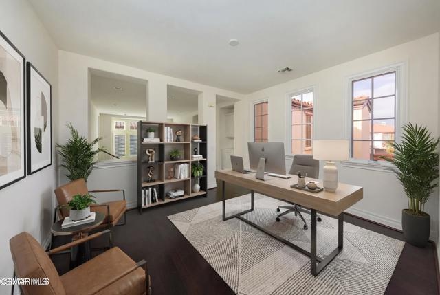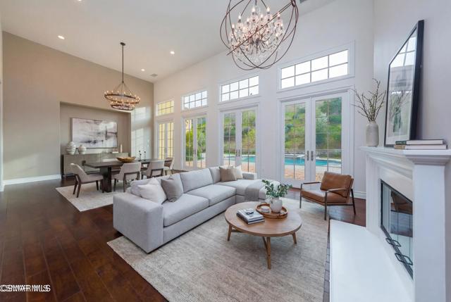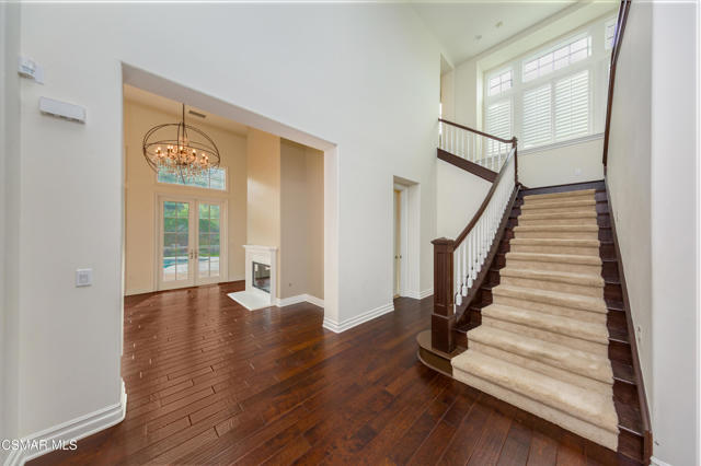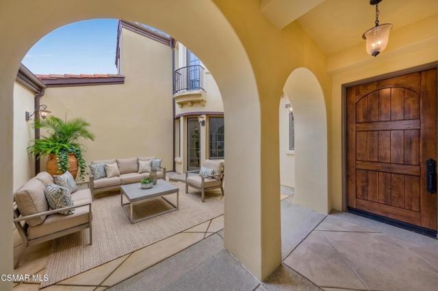 The Oaks at Calabasas is a guard gated community that redefines luxury. This home makes a strong first impression starting with the curb appeal showcasing lush and colorful landscape. Set behind a private wrought iron security gate, the sizeable open-air courtyard allows you to bask in the natural sunlight and is ideal for the 'green thumb' atrium lover. Upon entering, the main living space is a standout, with soaring ceilings, bright natural light, fireplace, and French doors that span the entire length of this massive space that opens to the backyard--creating seamless indoor-outdoor living. The kitchen is both functional and inviting, featuring generous counter space, a large center island, stainless steel appliances, walk-in pantry, ample storage and opens to the family room with a cozy fireplace. Every room facing the backyard has access to the outdoors and every bedroom has its own private bathroom. A desirable downstairs bedroom offers added flexibility for guests, multi-generational living, or a private home office. Enjoy a spacious media room with French doors opening to the front patio and the front courtyard, providing a flexible secondary living space. Take the bifurcated staircase with rich wood detailing and crisp white balusters up to the second floor. The second story has a thoughtful layout with 'one-bedroom split' offering privacy and versatility. The dedicated hallway introduces the laundry room(featuring plenty of storage, counter space, and a utility sink) in addition to two well-spaced bedrooms. Located off the upper-level landing, a loft serves as a transition space to the fireside primary suite--an inviting retreat featuring a private balcony, a charming turret (perfect for natural light while getting ready or as a reading nook), a spacious bath, and an impressive walk-in closet. The backyard is designed for both entertaining and everyday enjoyment, featuring a sparkling pool and spa, generous patio space, multiple areas to relax or gather, and a mature lemon tree adding charm and a touch of garden-to-table living. Just a short distance away is The Commons at Calabasas offering a variety of restaurants, stylish boutiques, grocery store, pharmacy and so much more! The property is in The Las Virgenes school District known for superior academics and award-winning programs for school aged children. This is not just a place to live; it is a place to belong.