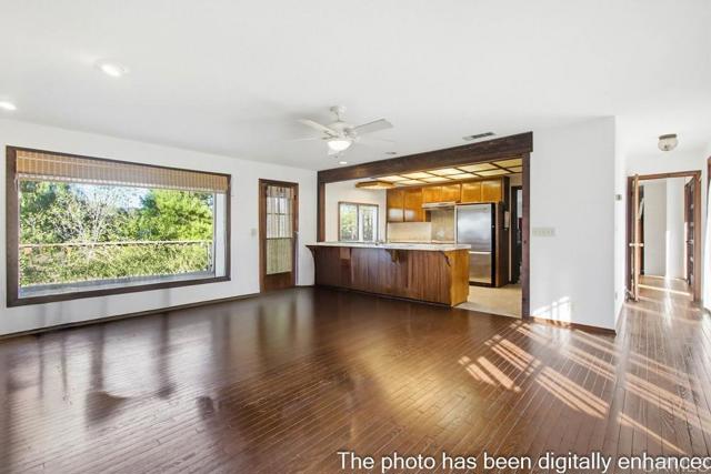 Solar paid off! Enjoy sweeping sunset, valley, hill, and peek ocean views from this exceptional property set on a private 0.92-acre lot. Offering 3,012 sq. ft. of living space with 5 bedrooms and 3 bathrooms, this home features an open floor plan with a beautifully updated kitchen, complete with granite countertops, stainless steel appliances, and travertine flooring. The formal dining room includes a built-in buffet, French doors, and dramatic floor-to-ceiling windows that showcase the stunning scenery. Two fireplaces, one equipped with a wood stove blower, add warmth and charm, while oak flooring enhances the living room. Expansive view decks create seamless indoor-outdoor living, perfect for relaxing or entertaining. Additional highlights include an efficient solar hot water system, mature fruit trees, RV parking, and a versatile lower-level bonus suite with its own bathroom, ideal for guests, extended family, or a home office.A rare combination of privacy, space, energy efficiency, and breathtaking views at an unbeatable valuedon't miss this opportunity!