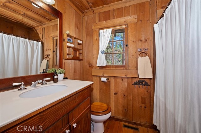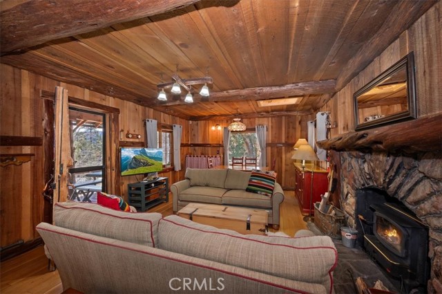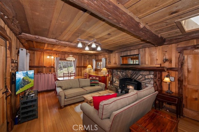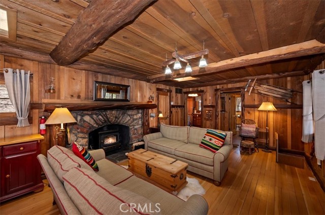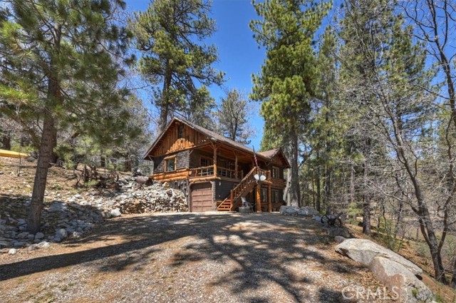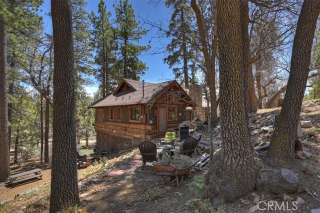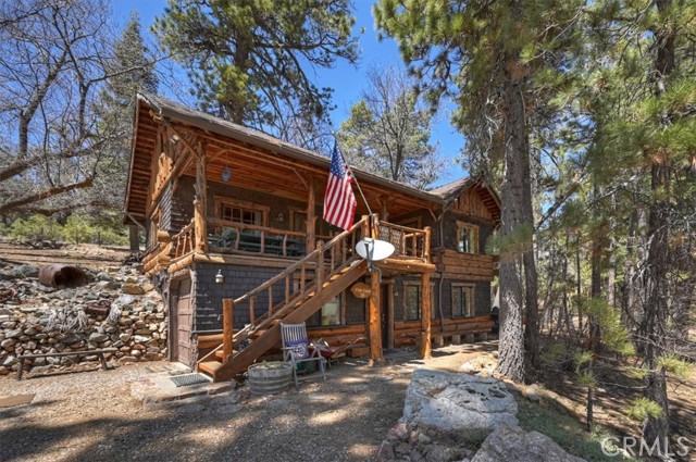 Now, THIS is a Cabin, with original and replaced log siding, a 1920 Forest Lease in Fawnskin, the small town eagles Jackie and Shadow call home on the north shore of Big Bear Lake. This upgraded Californian Cabin has views of ski slopes and thousands of trees, a master bedroom and bath on the first floor that includes a large walk-in closet and access to the garage. A large stone fireplace greets you in the living room with a wood burning stove heating up the rooms-a charming kitchen, another full bathroom, and a second bedroom looking out on Eastern sun and moon rises. There is a surprising long, and standable attic space with a window. You will have many, memorable choices to eat or read inside or outside, in the front or in the back of this 106 year old, loved Cabin. Several hundred cabins were built in Big Bear Lake for people to enjoy the benefits of the special San Bernardino’s mountain airs and beauty. You own the home, and lease the land, 5000 square feet, and can use the entire forest for recreation and relaxation. 22 Polique (Pole-ee-key) Canyon is being offered for the first time in three decades. It is one of the lucky cabins with easy access, plenty of parking, and a southern exposure that warms the driveway and few stairs. It is the perfect location for lake, AWD, and mindfulness activities. Come see it today. Drive up. Cash only. $379,000.