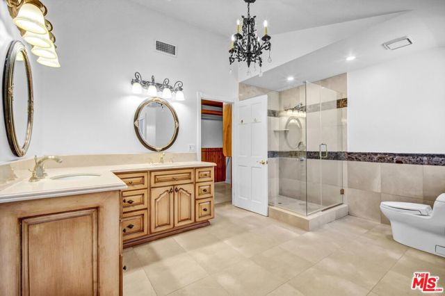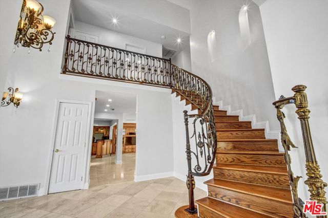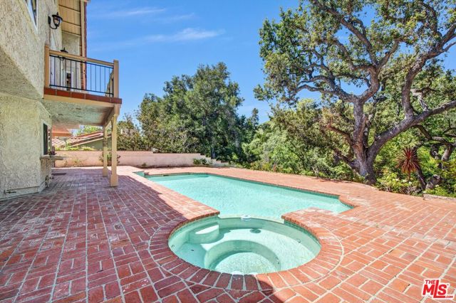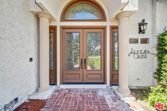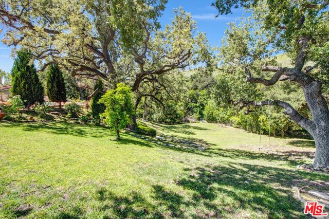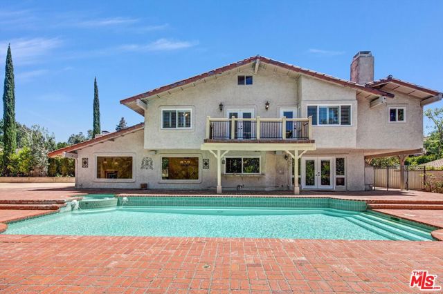 Gracefully tucked away at the end of a quiet cul-de-sac in the prestigious North Ranch community of Westlake Village, Seven Oaks Estate is a rare and enchanting residence named for the majestic oak trees that define the property. These towering oaks create a natural canopy over the expansive grassy grounds delivering a storybook, park-like setting that feels serene, private, and deeply restorative. Set on an impressive 20,908-square-foot lot, this 3,657-square-foot, upgraded two-story home is masterfully designed for classic Southern California indoor/outdoor living, offering effortless flow, elegant scale, and a profound connection to nature. From the moment you enter the grand two-story foyer, the home evokes warmth, sophistication, and a welcoming sense of ambiance. The home features five bedrooms and four-and-a-half bathrooms, including a separate maid's quarters with a private entrance, offering flexibility for guests, office or wine cellar. Custom craftsmanship is showcased throughout, with bespoke cabinetry in the kitchen, hutch, pantry, and bar, complemented by granite countertops, and recessed lighting that elevate the home's natural ambiance. Designed for memorable gatherings, the formal living room with skylight and fireplace opens to expansive patios, while the elegant dining room sets a refined tone for entertaining. The inviting family room, complete with a fireplace, custom media cabinetry, and a custom built bar, flows effortlessly to the outdoors creating a true indoor/outdoor lifestyle experience. The primary suite is a serene retreat, offering a fireplace and balcony with views over the grounds and sparkling pool; The spa-inspired bath features a two-person soaking tub, glass-enclosed shower, dual vanities, and two generous walk-in closets with custom built-ins. Three additional upstairs bedrooms offer distinctive character, including and second en-suite bedroom, soaring ceilings, balcony access with a flex/loft space, and tranquil garden vistas; the third well-appointed bathroom with dual sinks and shower complete the upstairs. Outdoors, Seven Oaks Estate reveals its most enchanting moments: a heated pool and spa, expansive entertaining patios, al fresco dining areas, and a custom fire pit for year-round enjoyment. The rolling lawn overlooks a gentle creek, where tree swings beneath the oaks evoke a sense of delight and nostalgia - an environment that is at once peaceful, therapeutic, and inspiring. Seven Oaks Estate is more than a residence - it's a place where nature, privacy, and refined living come together in perfect harmony in one of North Ranch's most coveted settings. Close to Award Winning schools, hiking trails, shopping a dining.
