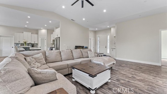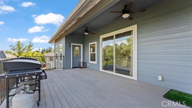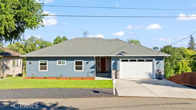 Welcome to this stunning newer home in the East Foothills with owned solar! Built in 2020, this 3 bed, 2.5 bath home sits on nearly half an acre and offers modern style with an open, airy layout. Step inside to a bright great room with vaulted ceilings, abundant natural light, and a seamless flow into the chef’s kitchen featuring a large gray island, white cabinetry, granite countertops, tile backsplash, stainless steel appliances, and a walk-in pantry. The spacious primary suite includes coffered ceilings, a walk-in closet, and private balcony access. The en-suite bath features dual sinks, a soaking tub, and a large tile walk-in shower. Enjoy outdoor living with a covered composite deck and peaceful backyard setting. Seller is paying off the solar—so you’ll have OWNED SOLAR for energy savings. Additional features include an oversized 2-car garage, indoor laundry/mud room with sink and storage, and expansive under-home space with a finished room offering endless potential. Located on a cul-de-sac near Lake Oroville, with easy access to trails, recreation, and town—this home truly has it all.