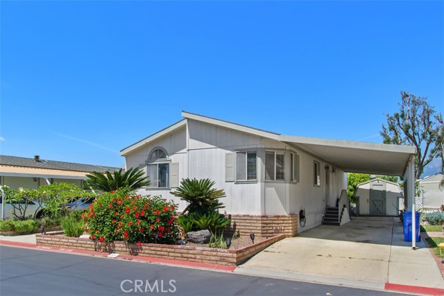 Beautiful 2-bedroom 2 bath with a bonus room mobile home located in the exclusive Rancho Ontario. The driveway can fit up to 2 small vehicles and also offers a shed, an open porch. Renovated amenities await you offering a heated pool and spa opened year-round, a hall to host any event, our clubhouse offers a billiards room, card table room, a fitness room as well as a gym or lounge area to just sit and relax. The Park also offers an active area with two pickleball courts, bocce ball and we didn't forget about your fur babies, two dog parks. Don't miss out on touring and calling the beauty your home.